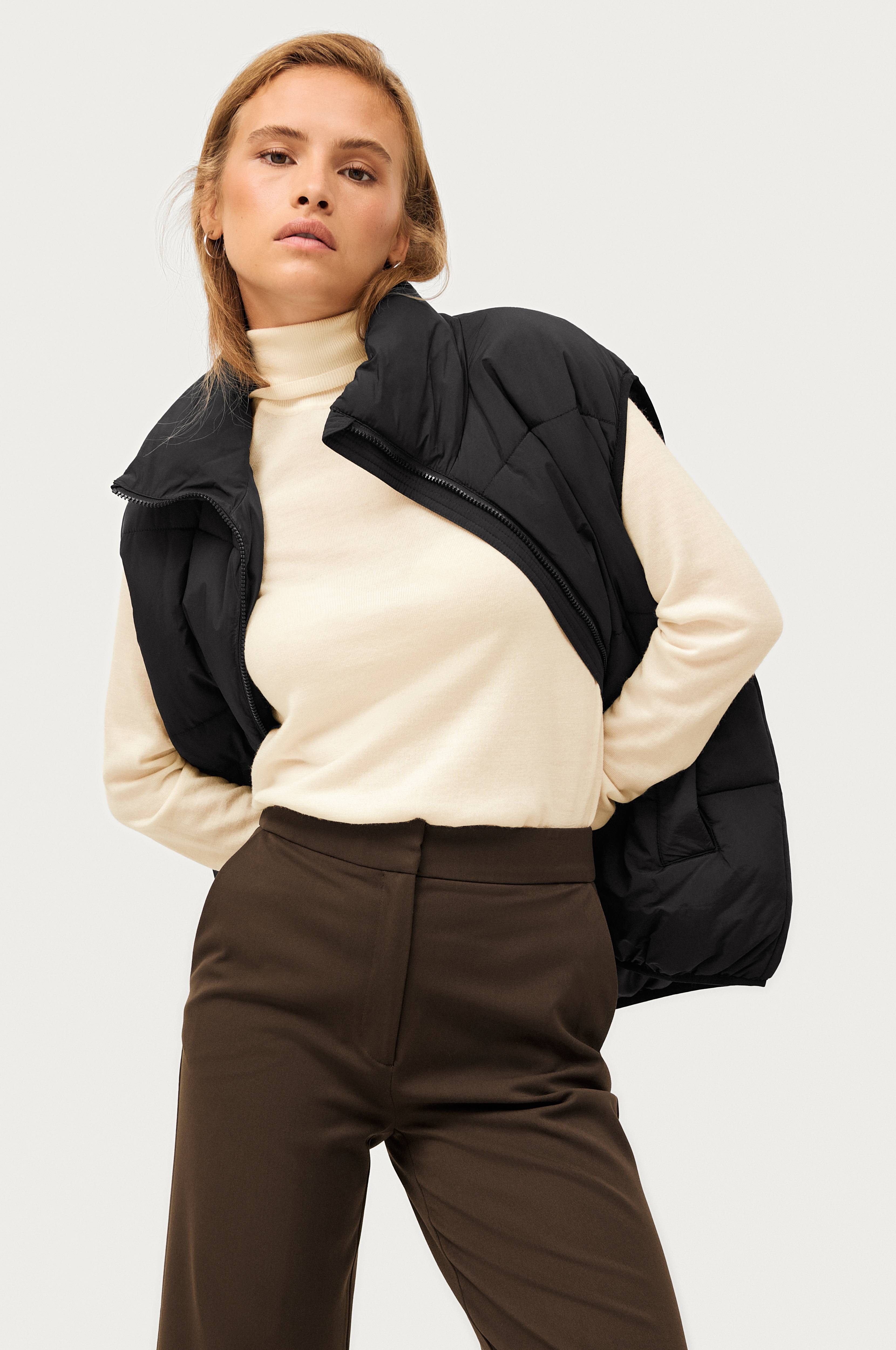 • Ribbede, elastiske kanter omkring ærmeåbningerne og nederst
