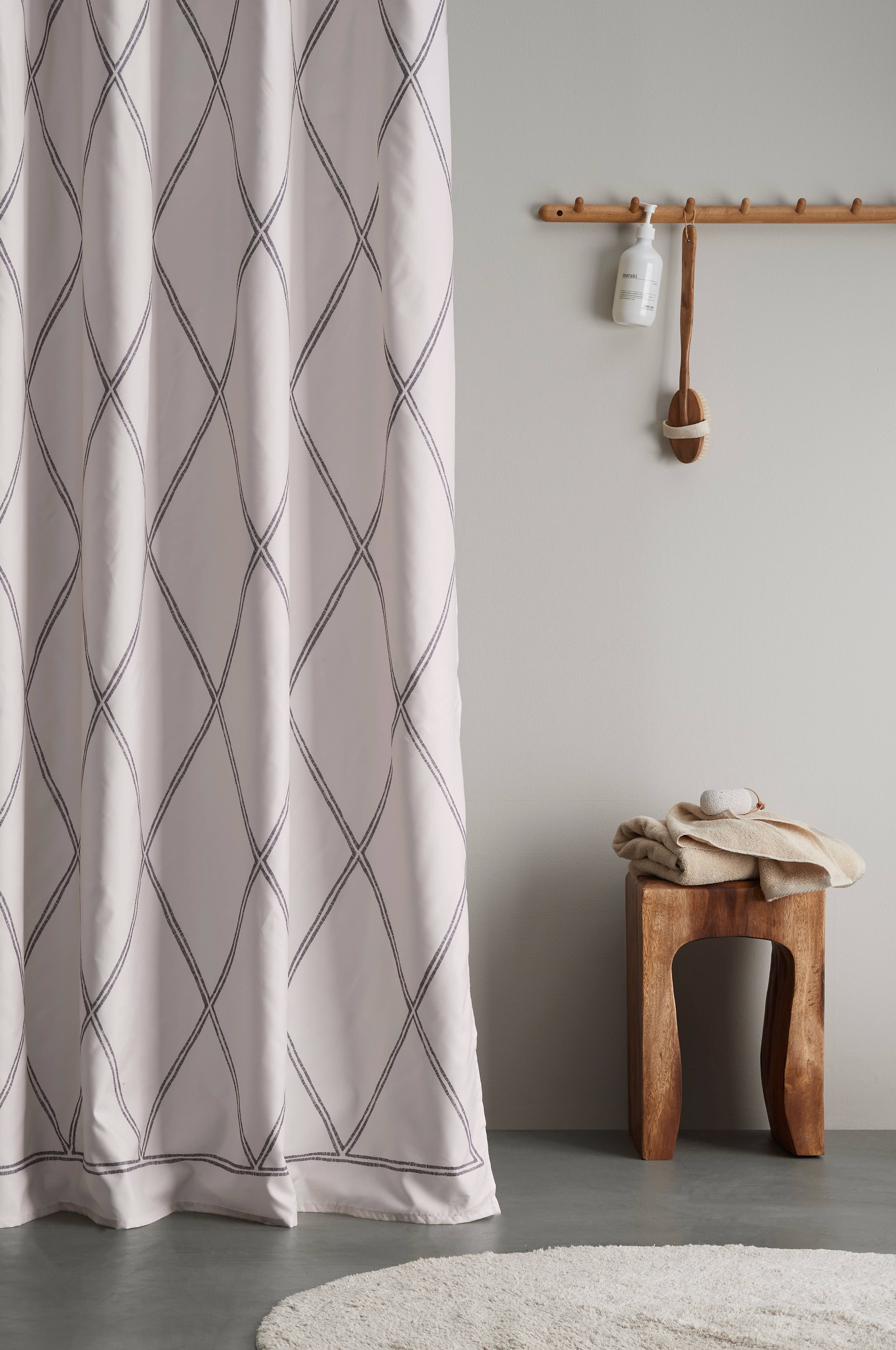 Badeforhæng med printet mønster. 10 metalringe. Str. 180x200 cm.