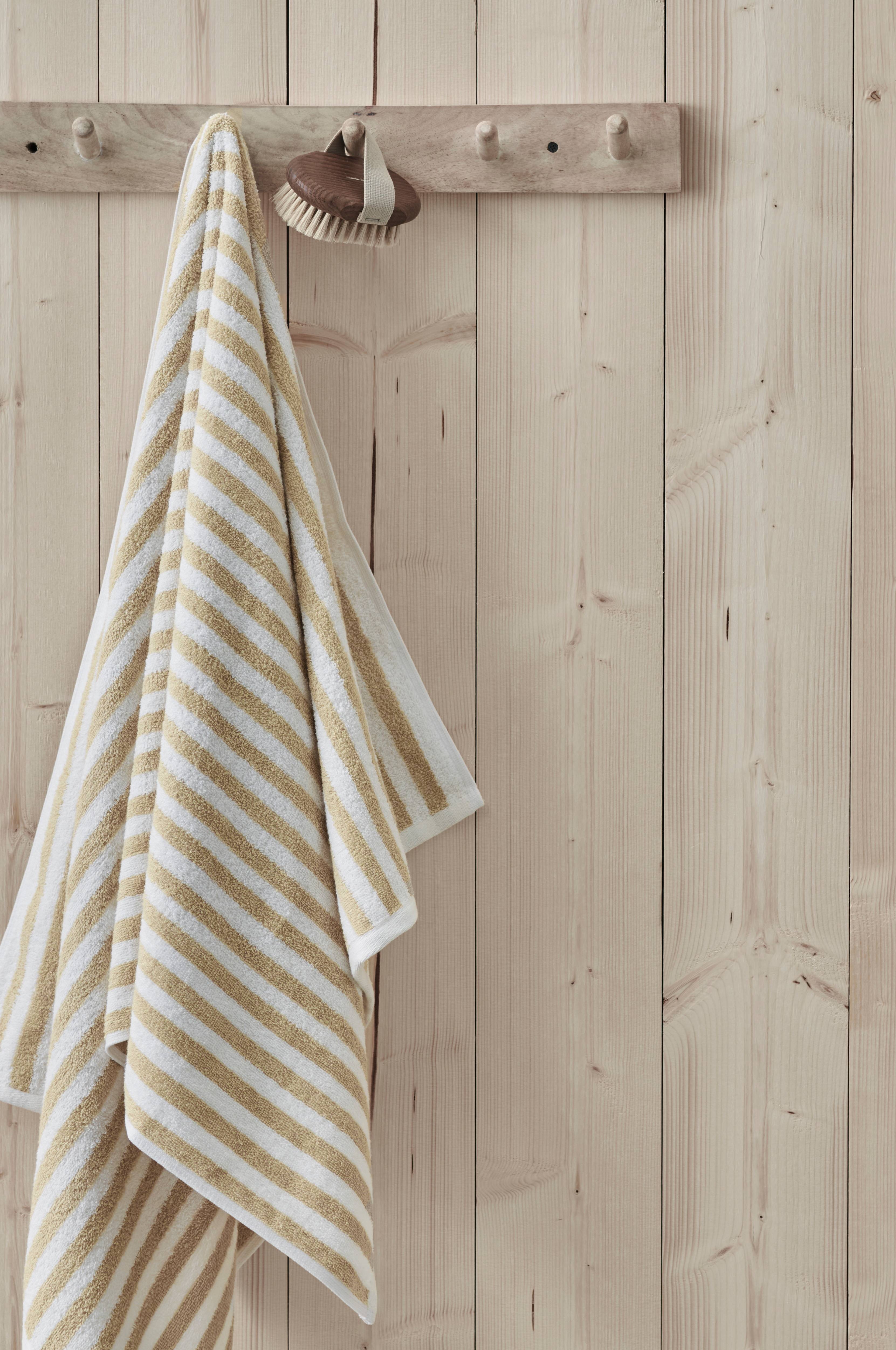 Badehåndklæde i blød og skøn bomuldsfrotté med garnfarvede striber. Str. 70x140 cm.