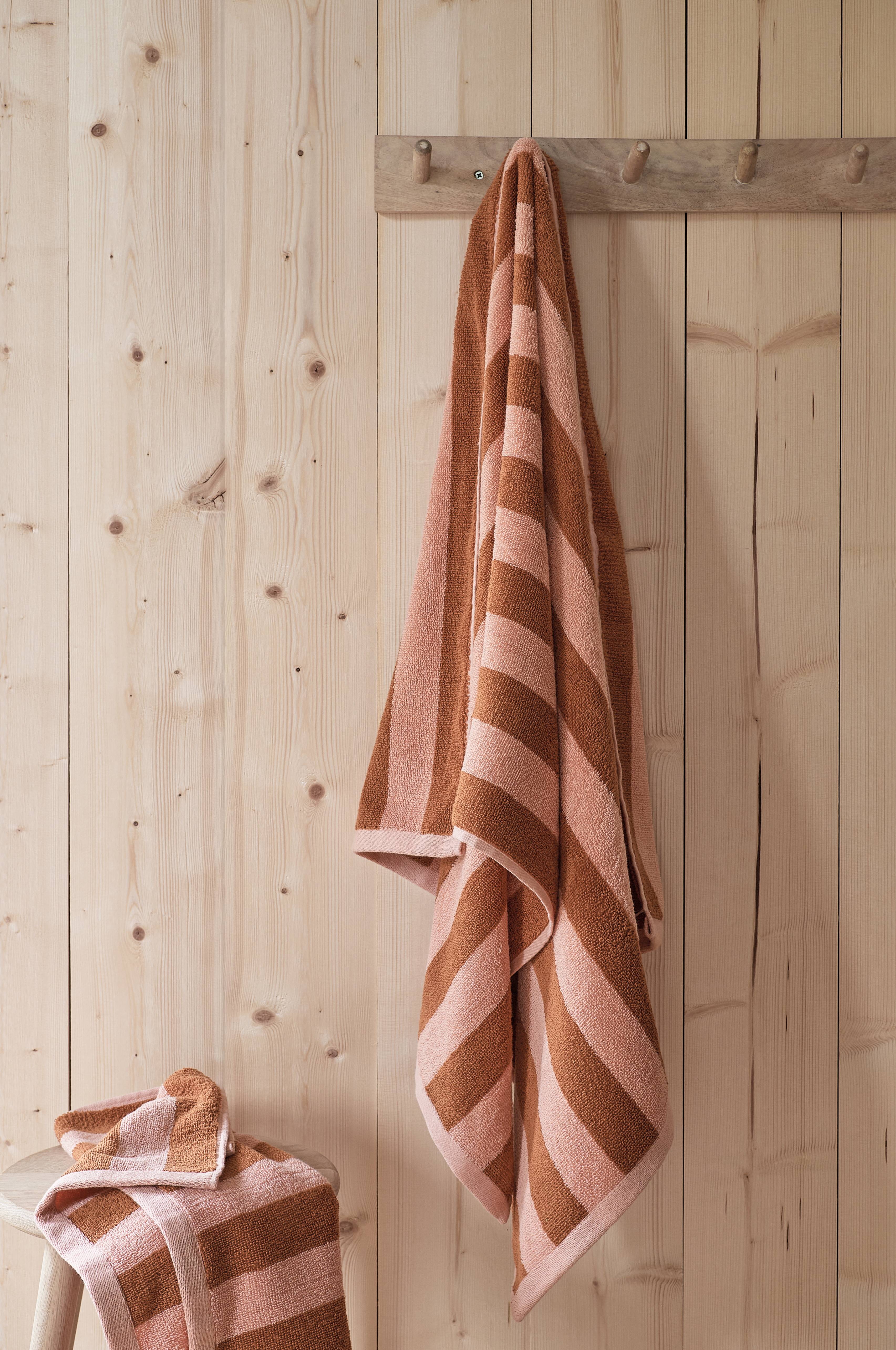 Badehåndklæde i blød og skøn bomuldsfrotté med garnfarvede striber. Str. 70x140 cm.