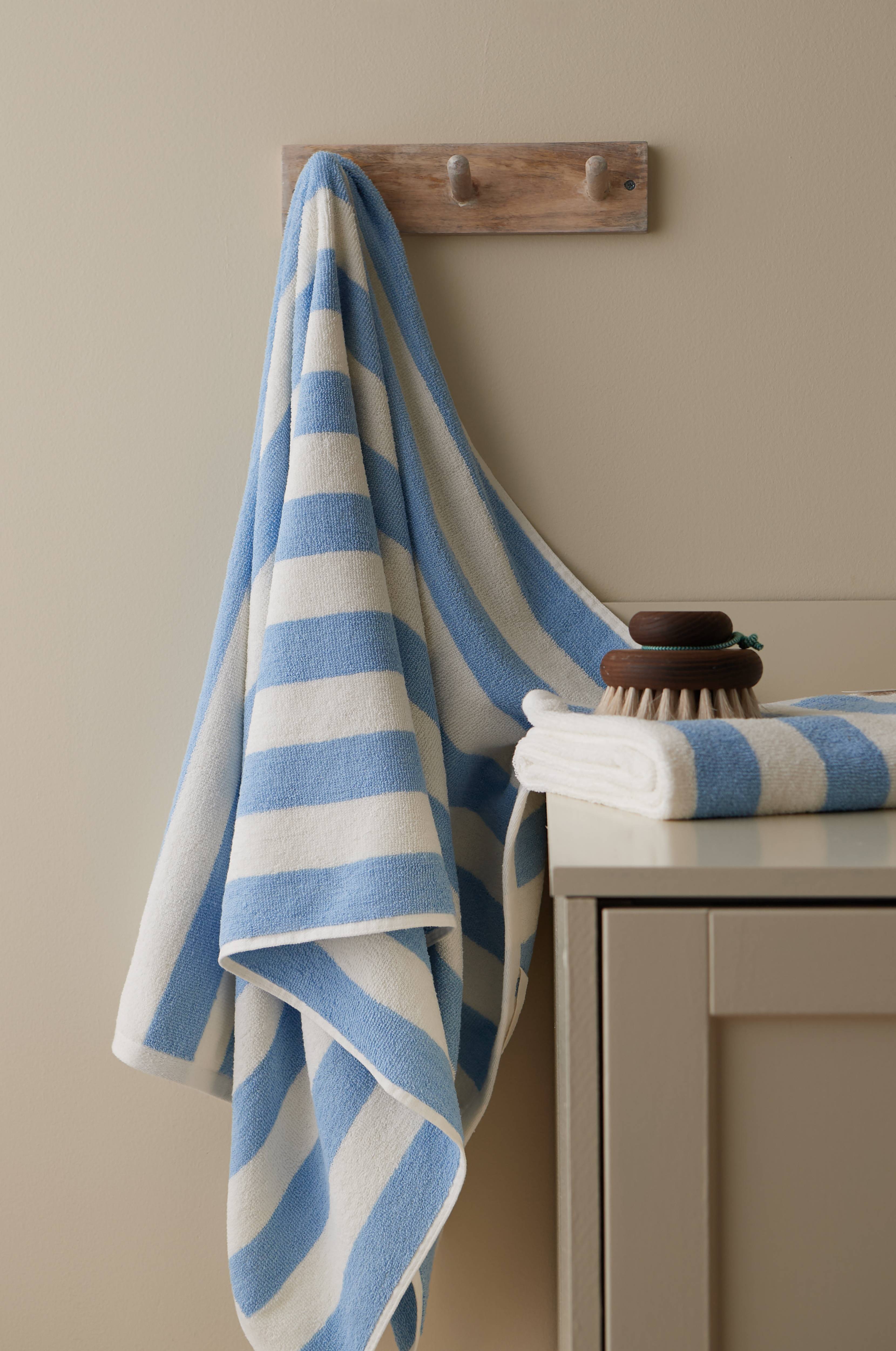 Badehåndklæde i blød og skøn bomuldsfrotté med garnfarvede striber. Str. 70x140 cm.