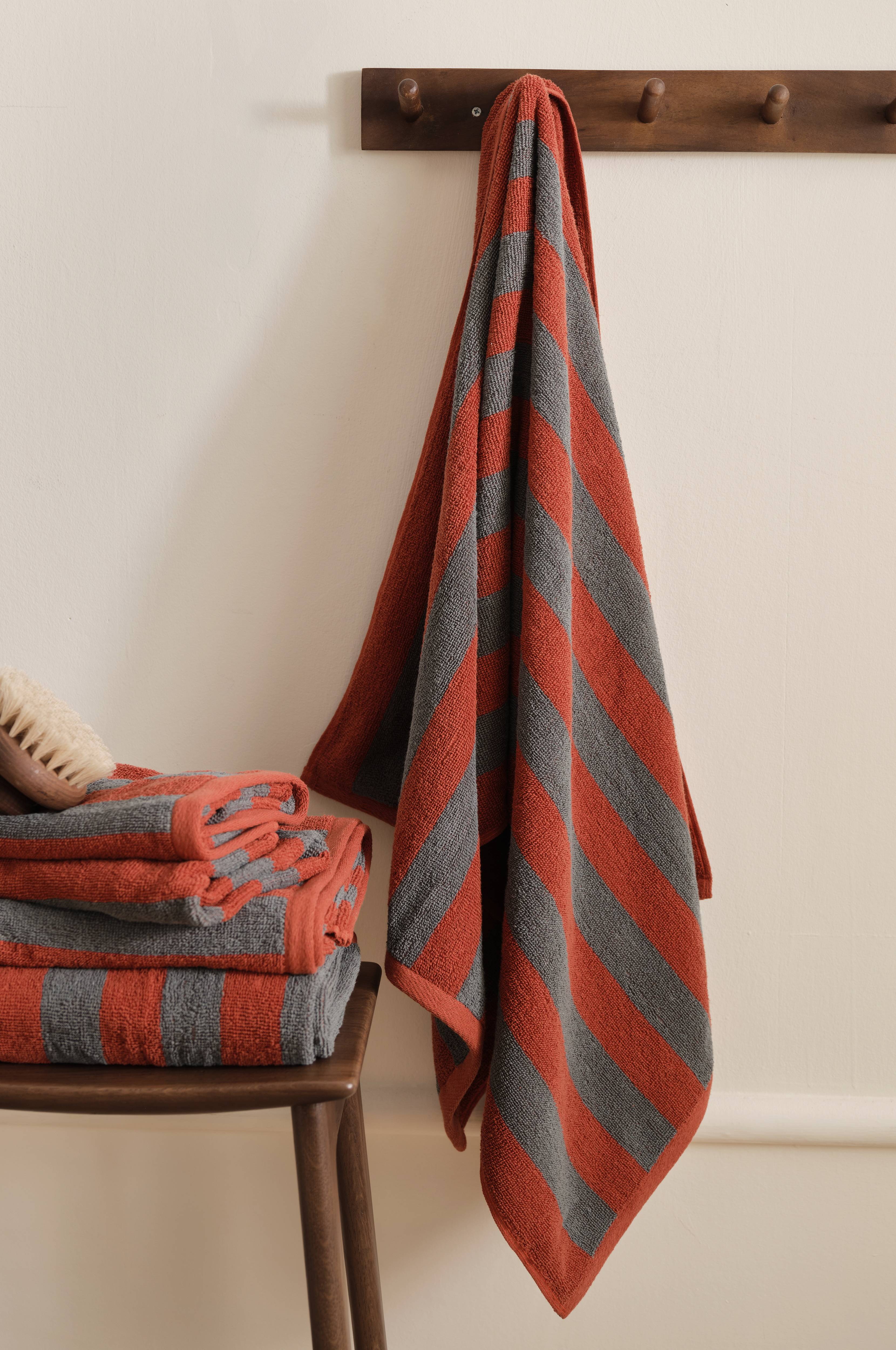 Badehåndklæde i blød og skøn bomuldsfrotté med garnfarvede striber. Str. 70x140 cm.