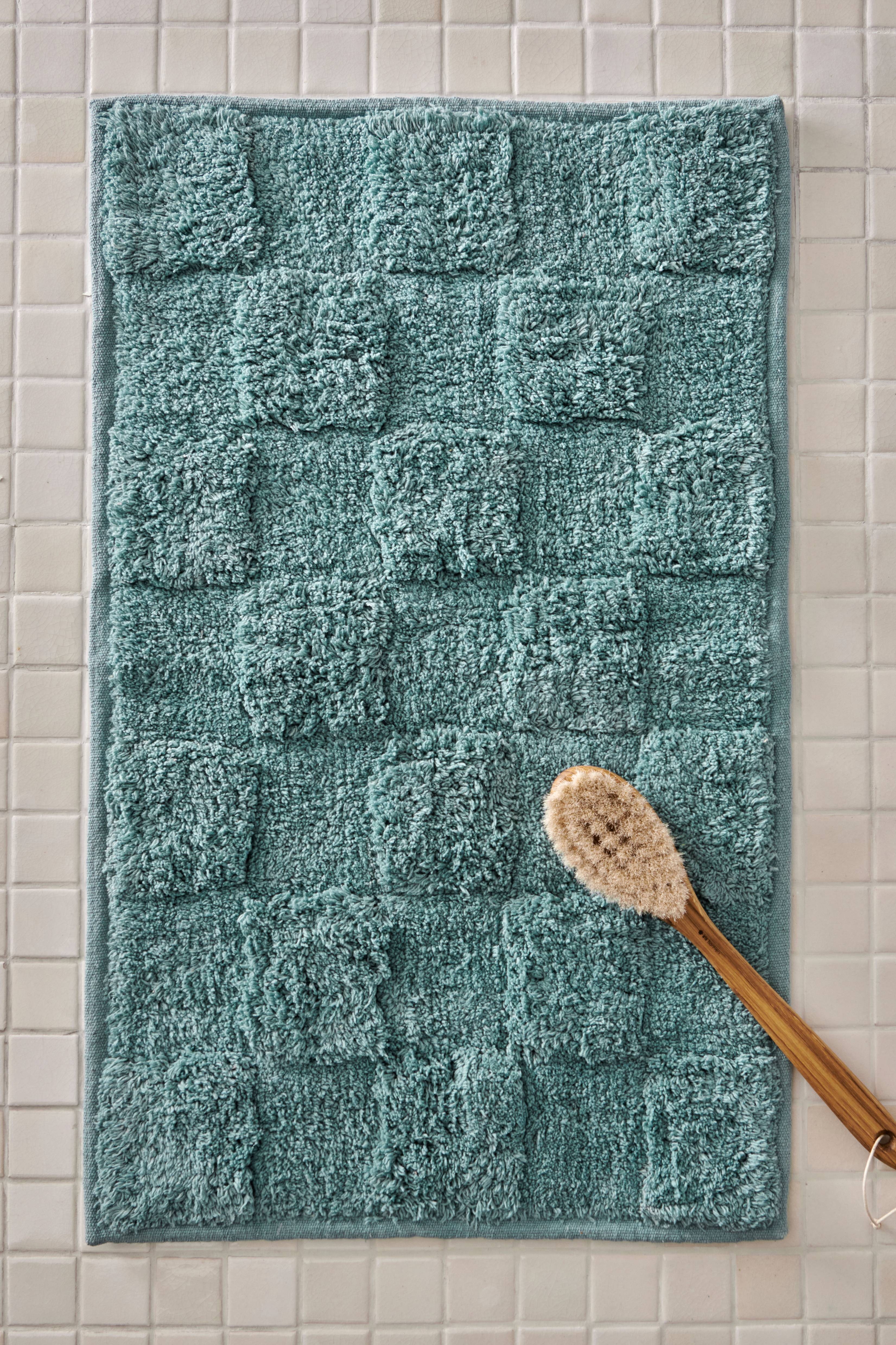 • Blødt badeværelsestæppe med tuftede firkanter i forskellige højder