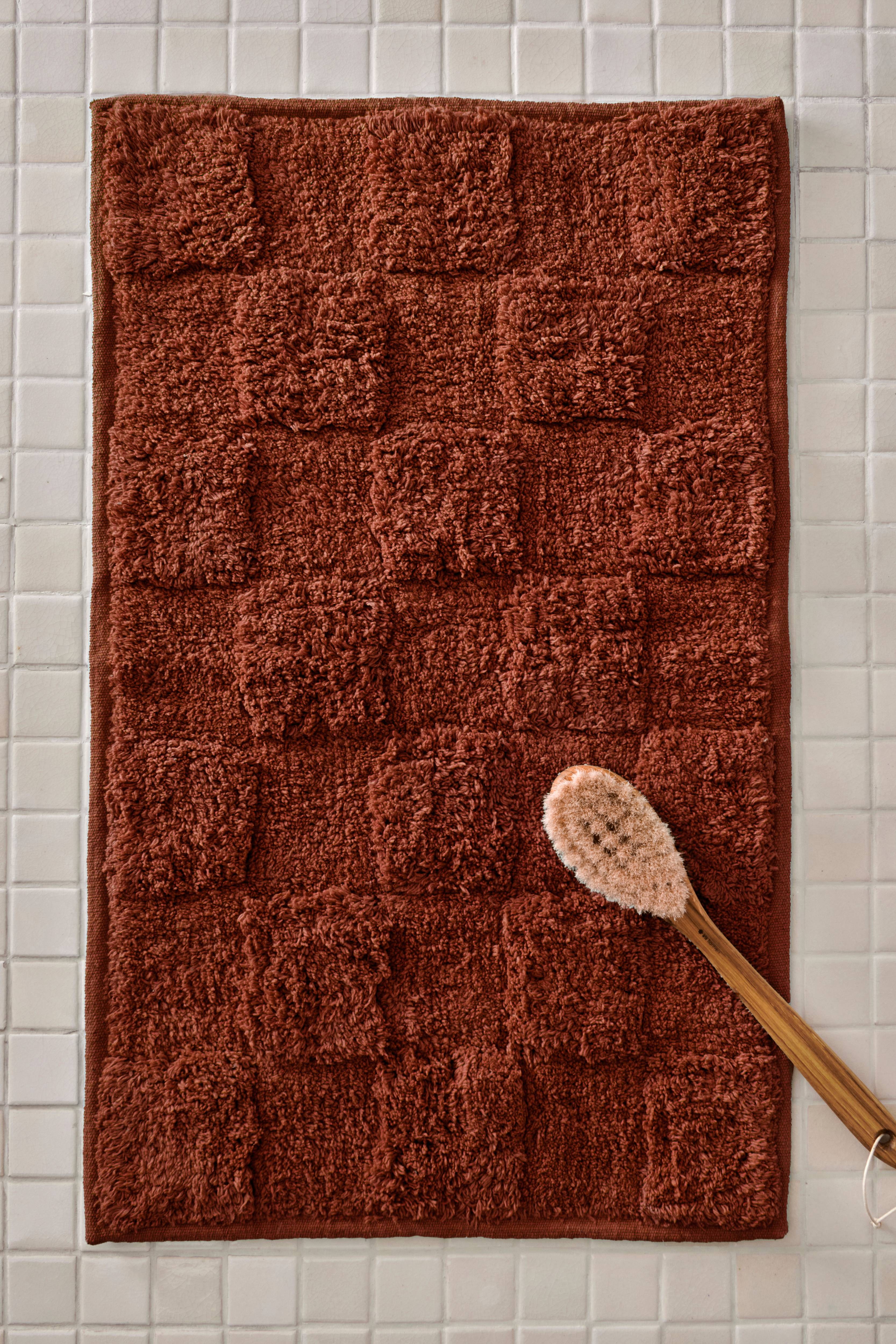 • Blødt badeværelsestæppe med tuftede firkanter i forskellige højder