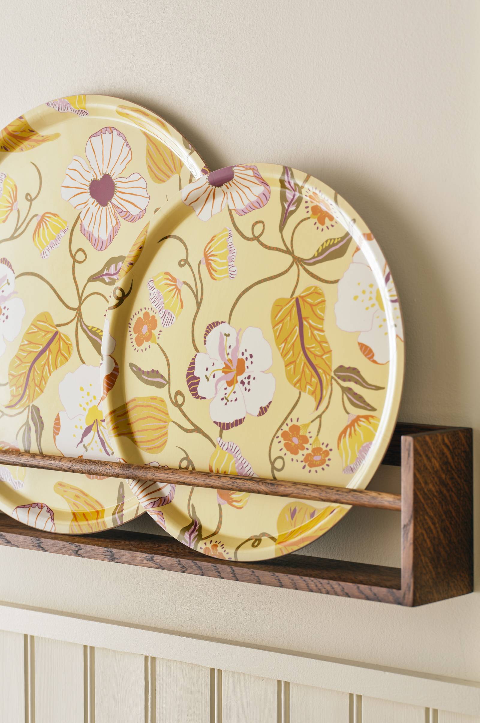 • Rund, håndlavet bakke i birk• Lamineret, slidstærk overflade med printet blomstermønster• Tåler opvaskemaskine