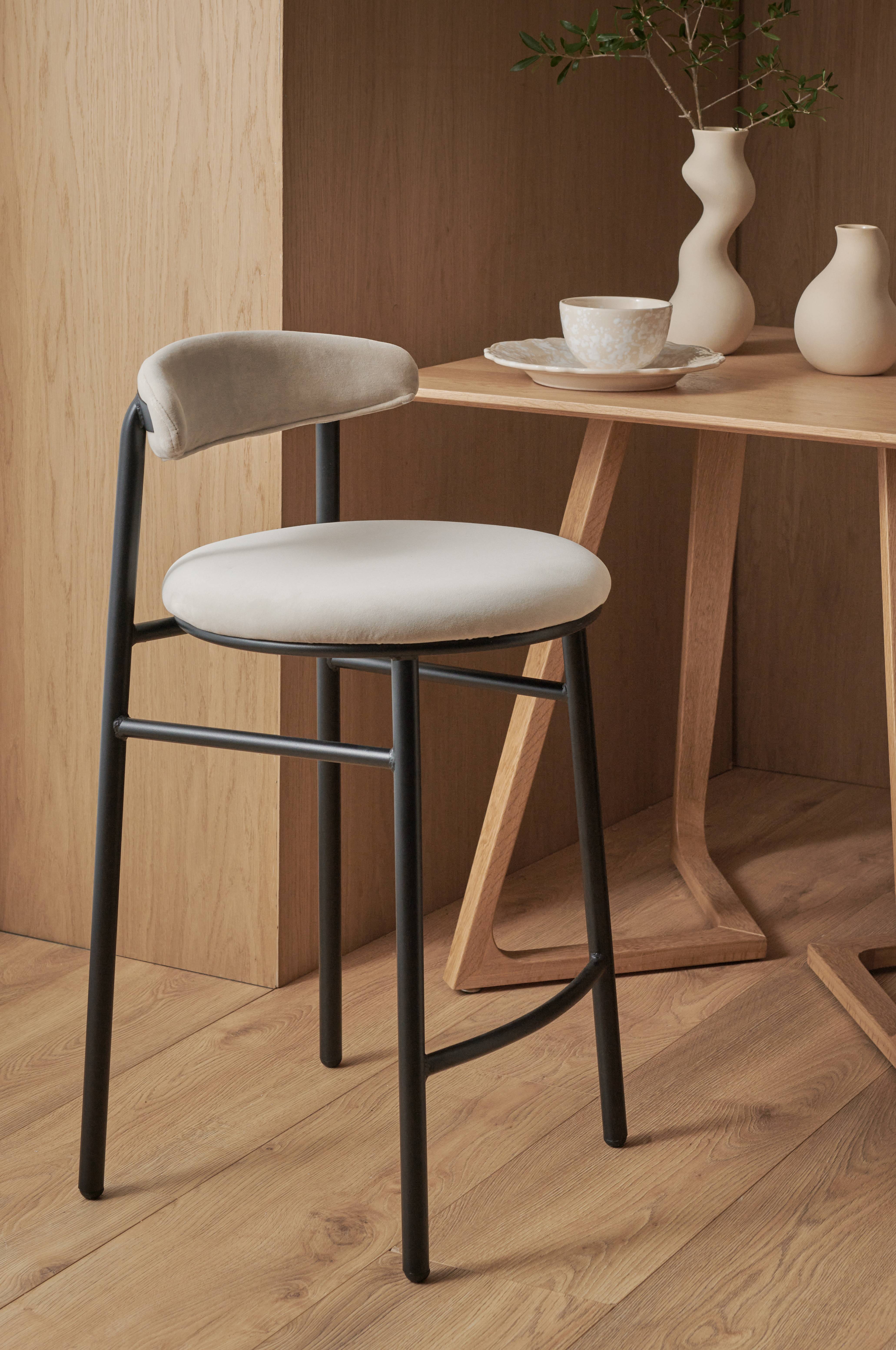 Fine og nette barstole med god siddekomfort. Pænt fløjlsbetræk. Passede perfekt til vores køkken.