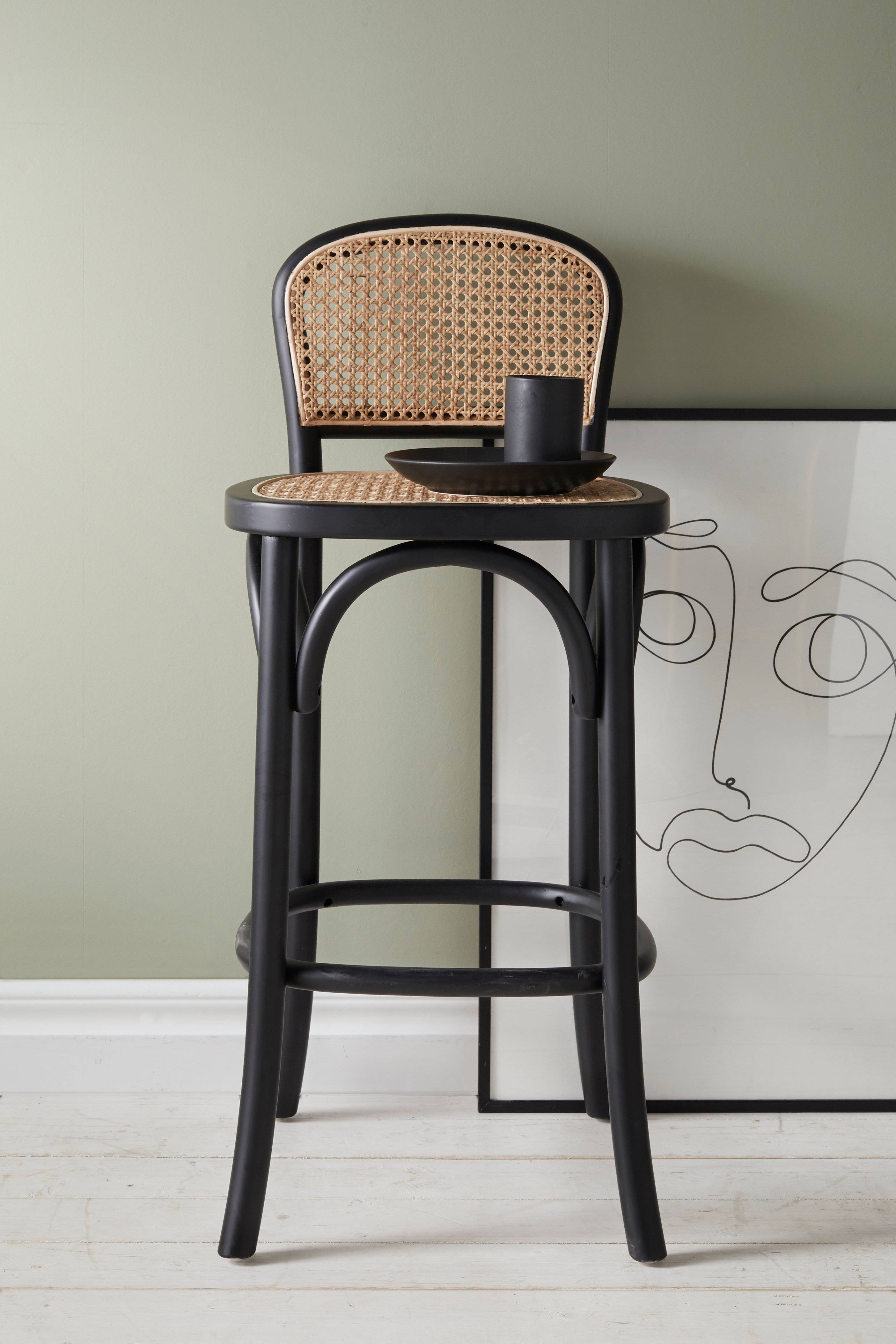 • Barstol i bøg med ryg og sæde i rattan
