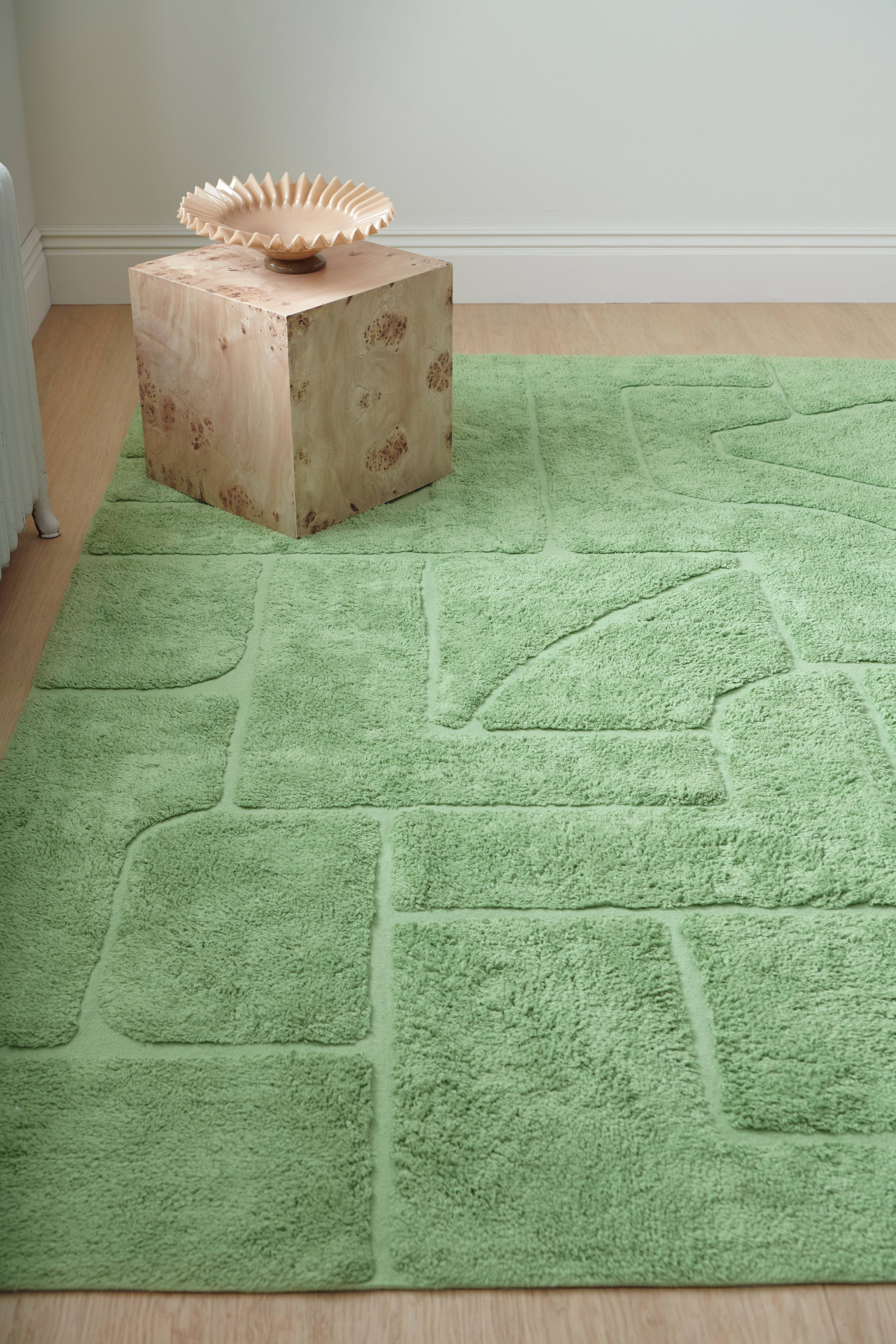 • Håndvævet bomuldsgulvtæppe med dekorativt, tuftet mønster