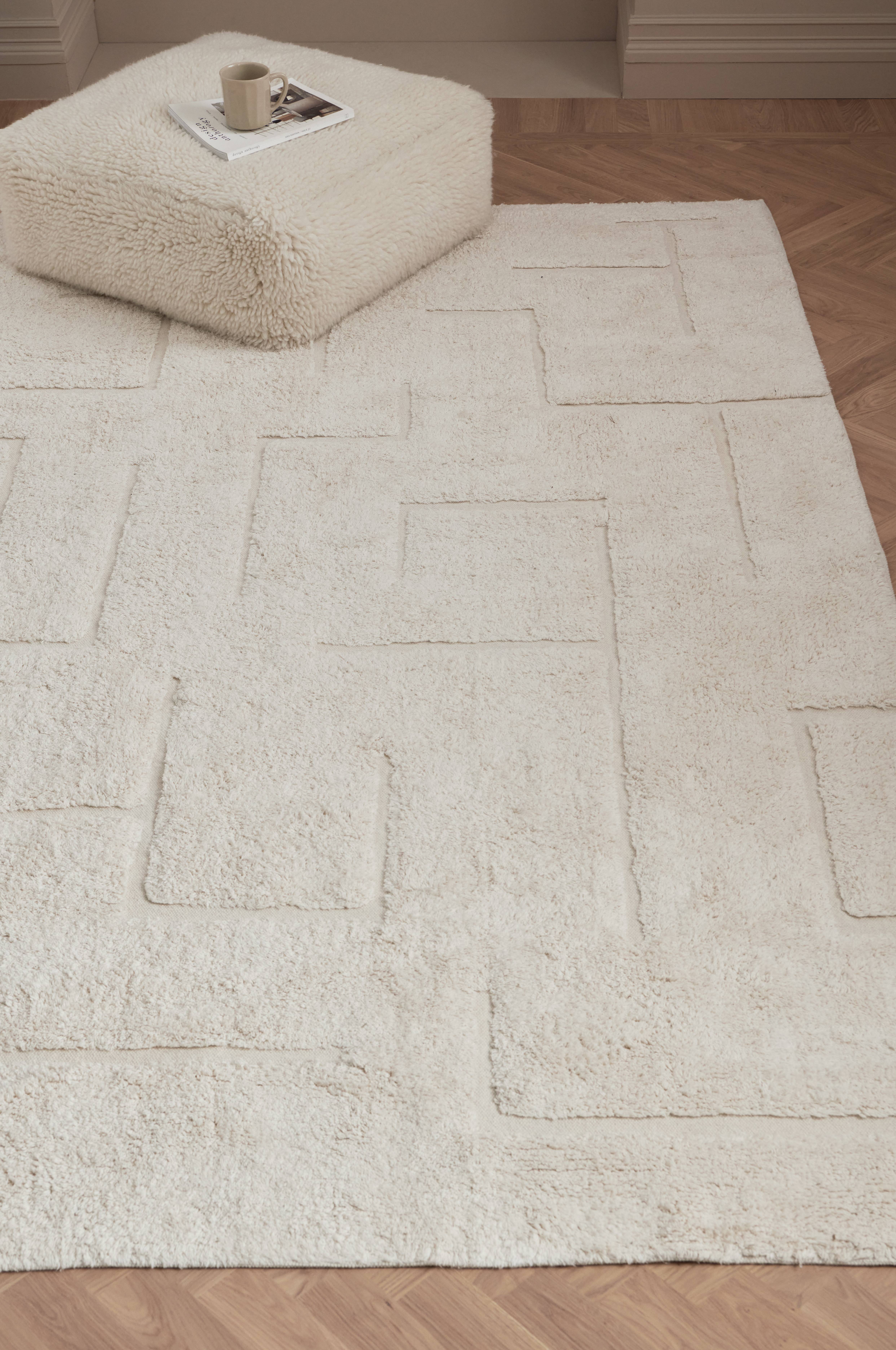 • Håndvævet bomuldsgulvtæppe med tuftet, blødt mønster
