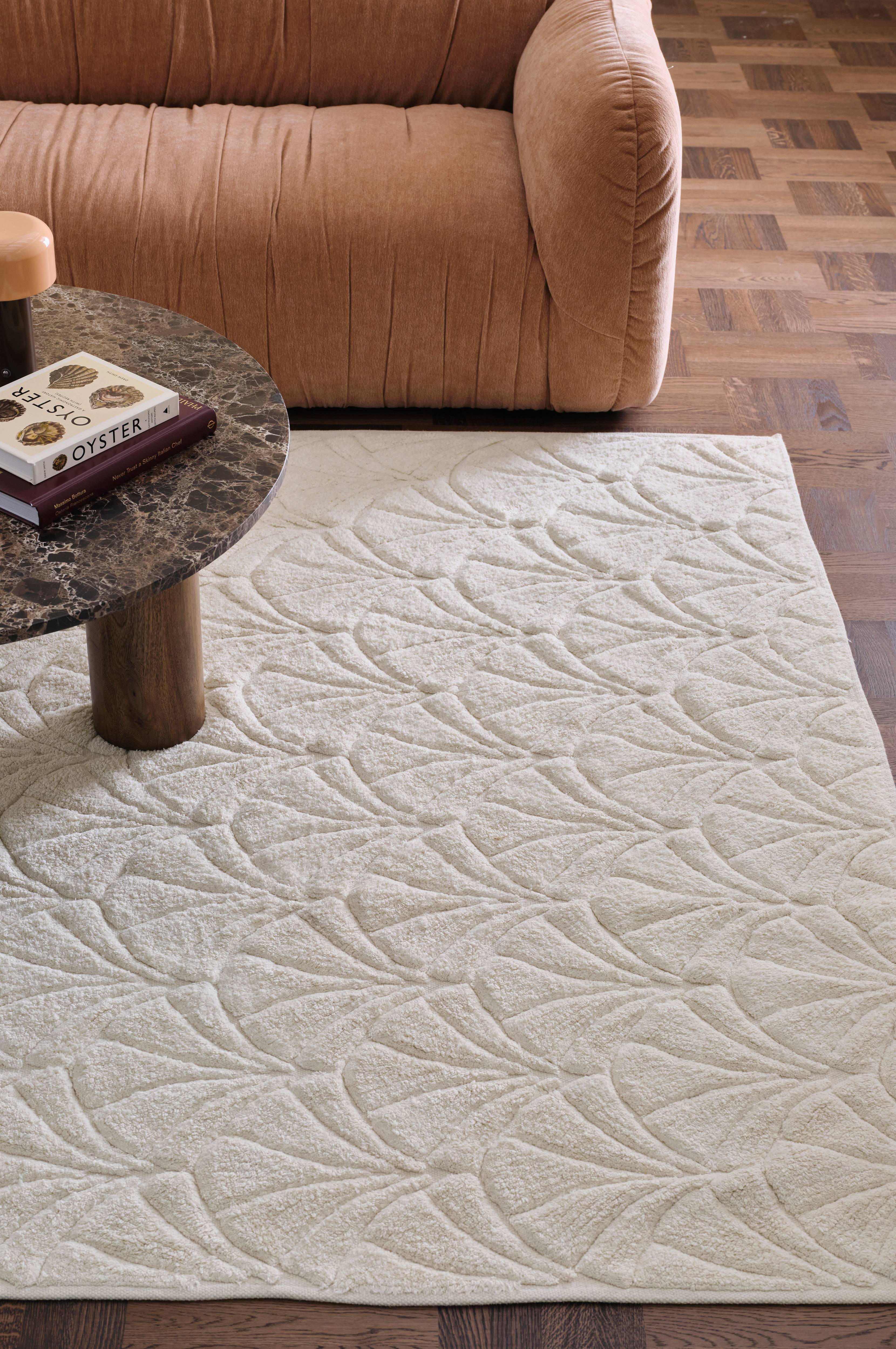 • Håndvævet bomuldsgulvtæppe med tuftet mønster