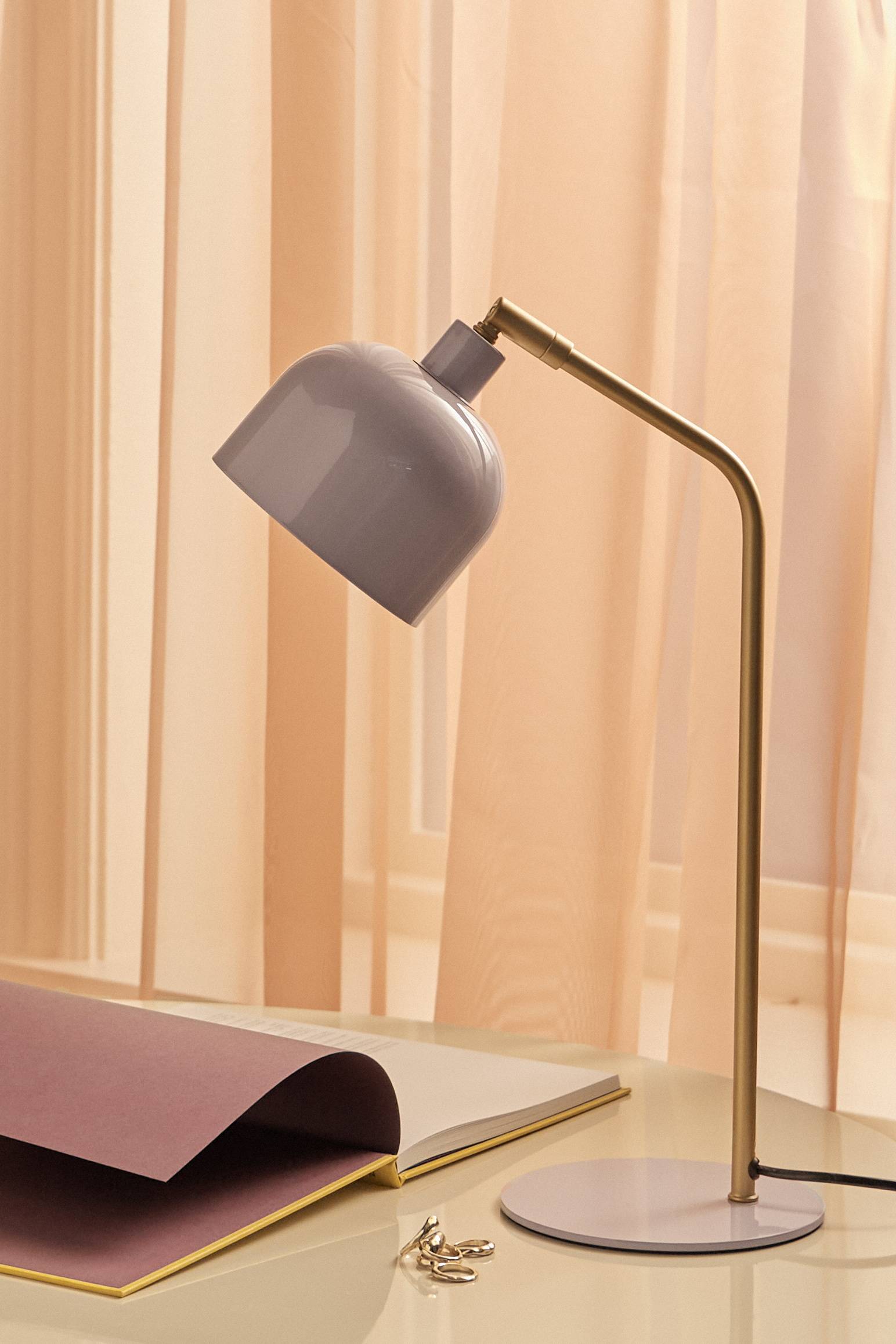 • Bordlampe i malet, skinnende stål• Arm med guldfarvet afslutning• Plastledning med kontakt• Bevægeligt kugleled til justering af skærmen, frit roterende• Lampeskærmens diameter: 13 cm• Lampeskærmens højde: 10 cm• Pære medfølger ikke
