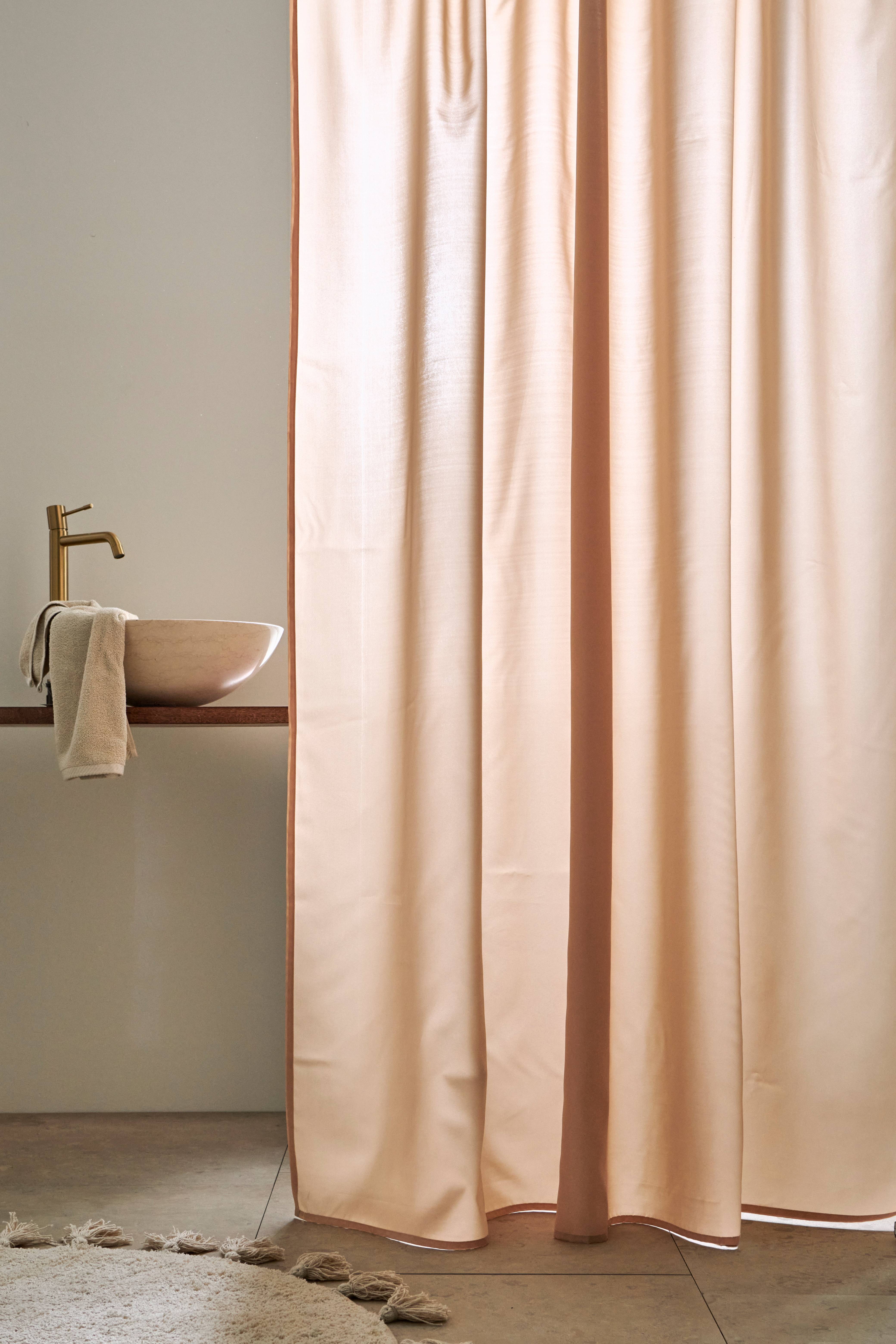 Varm rustrød farve, der gør badeværelset til et levende, men stadig roligt sted. Blødt materiale, der giver et smukt fald og ser hyggeligt ud, og kan skubbes sammen og dermed…