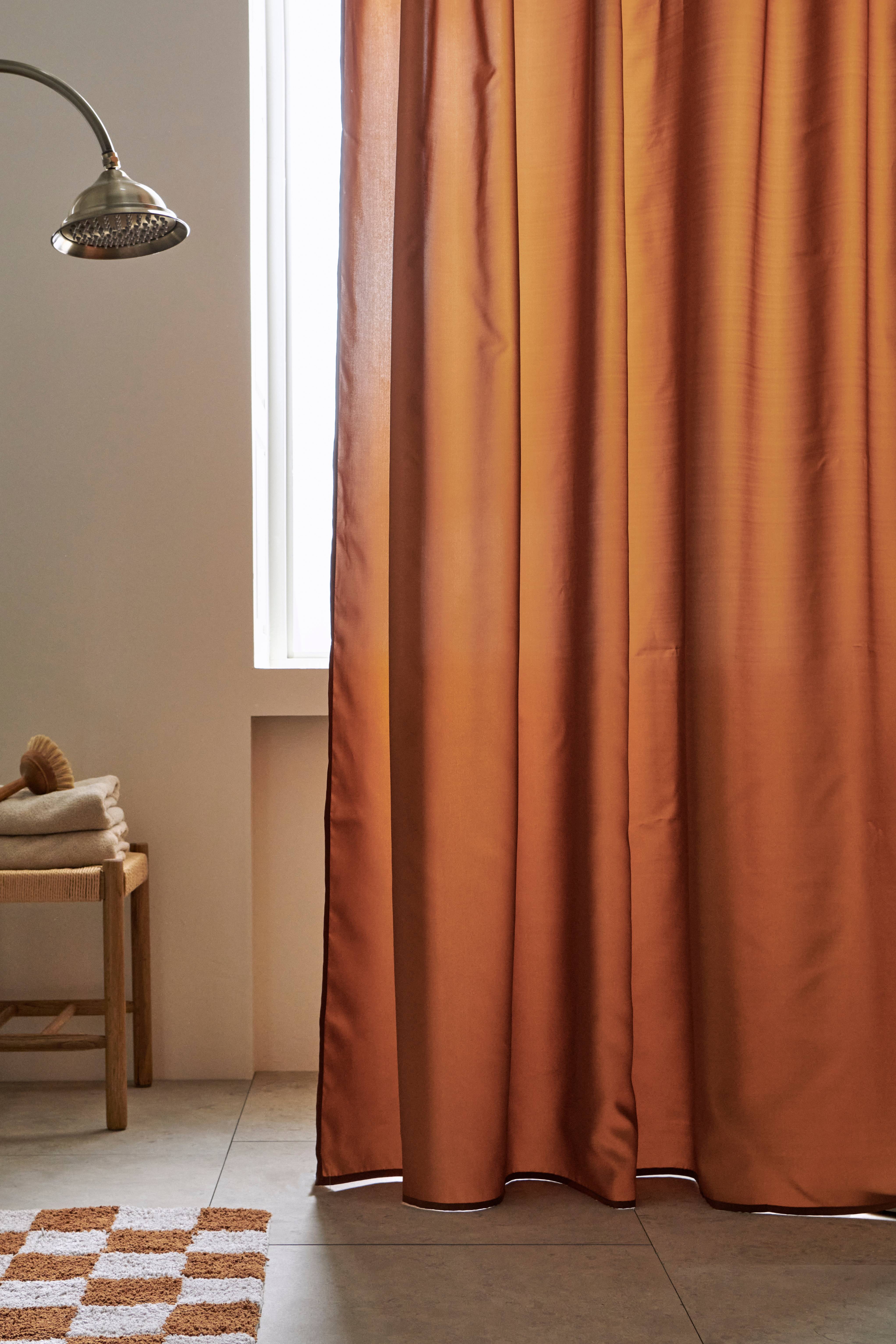 Varm rustrød farve, der gør badeværelset til et levende, men stadig roligt sted. Blødt materiale, der giver et smukt fald og ser hyggeligt ud, og kan skubbes sammen og dermed…
