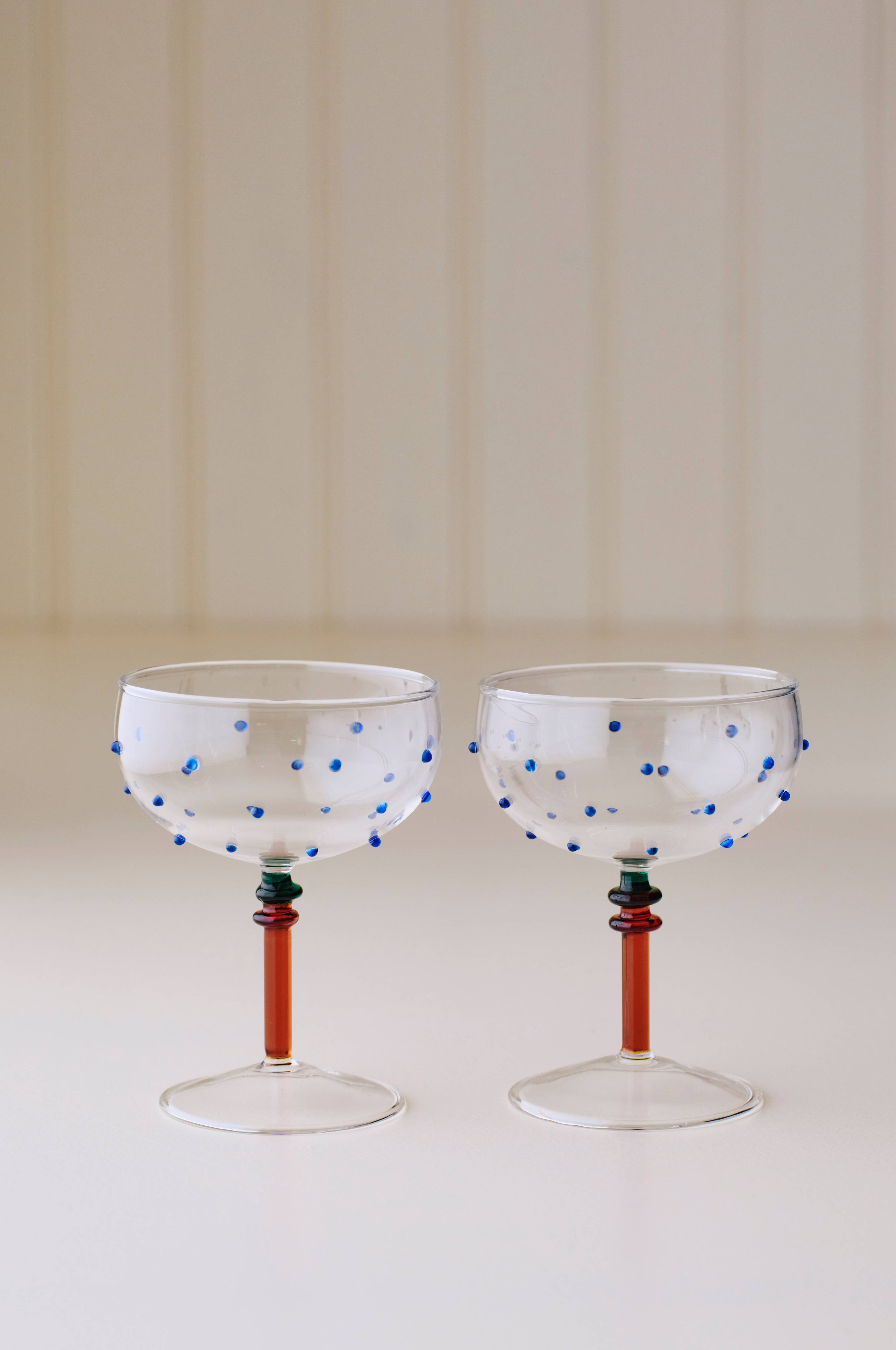 • Cocktailglas med farvede strukturprikker hele vejen rundt• Skaft i kontrastfarvet glas