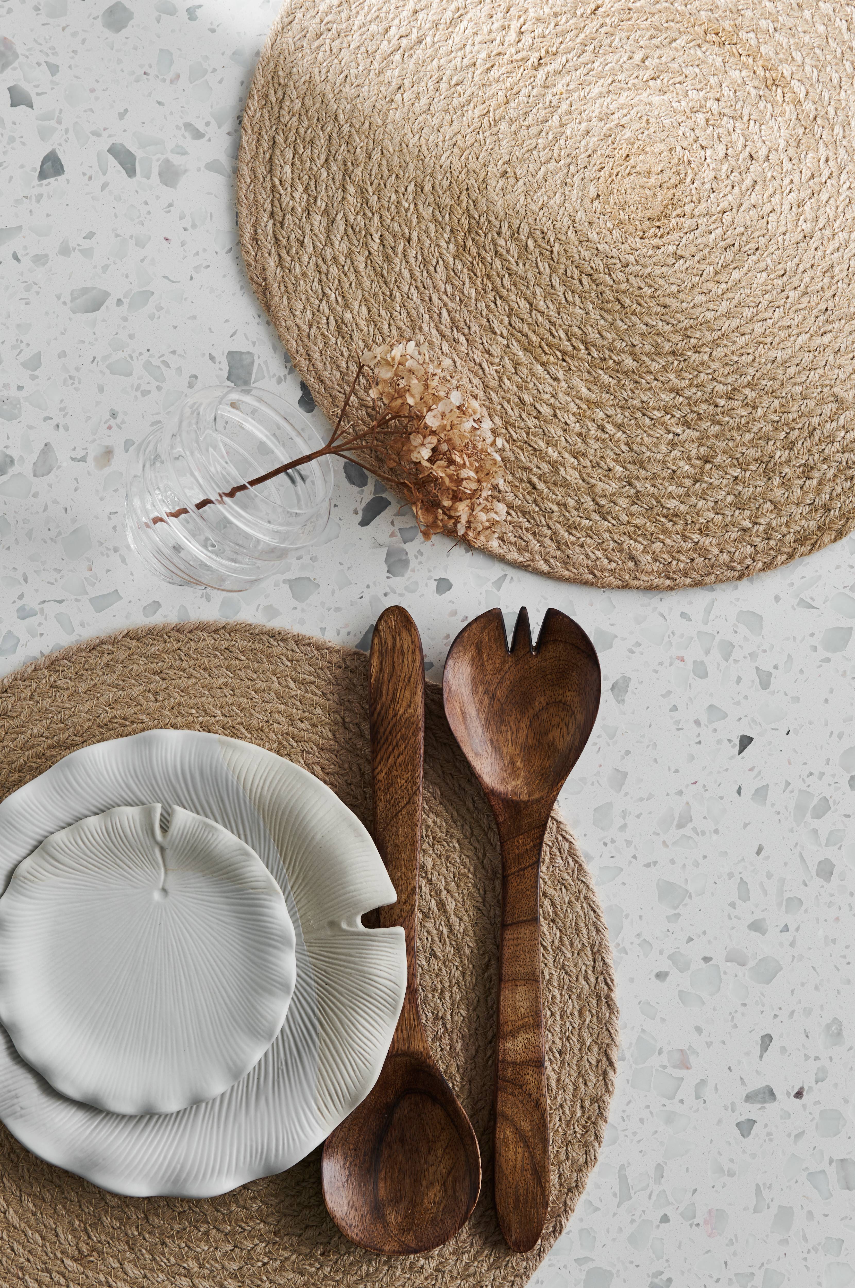 Runde dækkeservietter i 4-pak af flettet jute i blød kvalitet. Ø 38 cm.