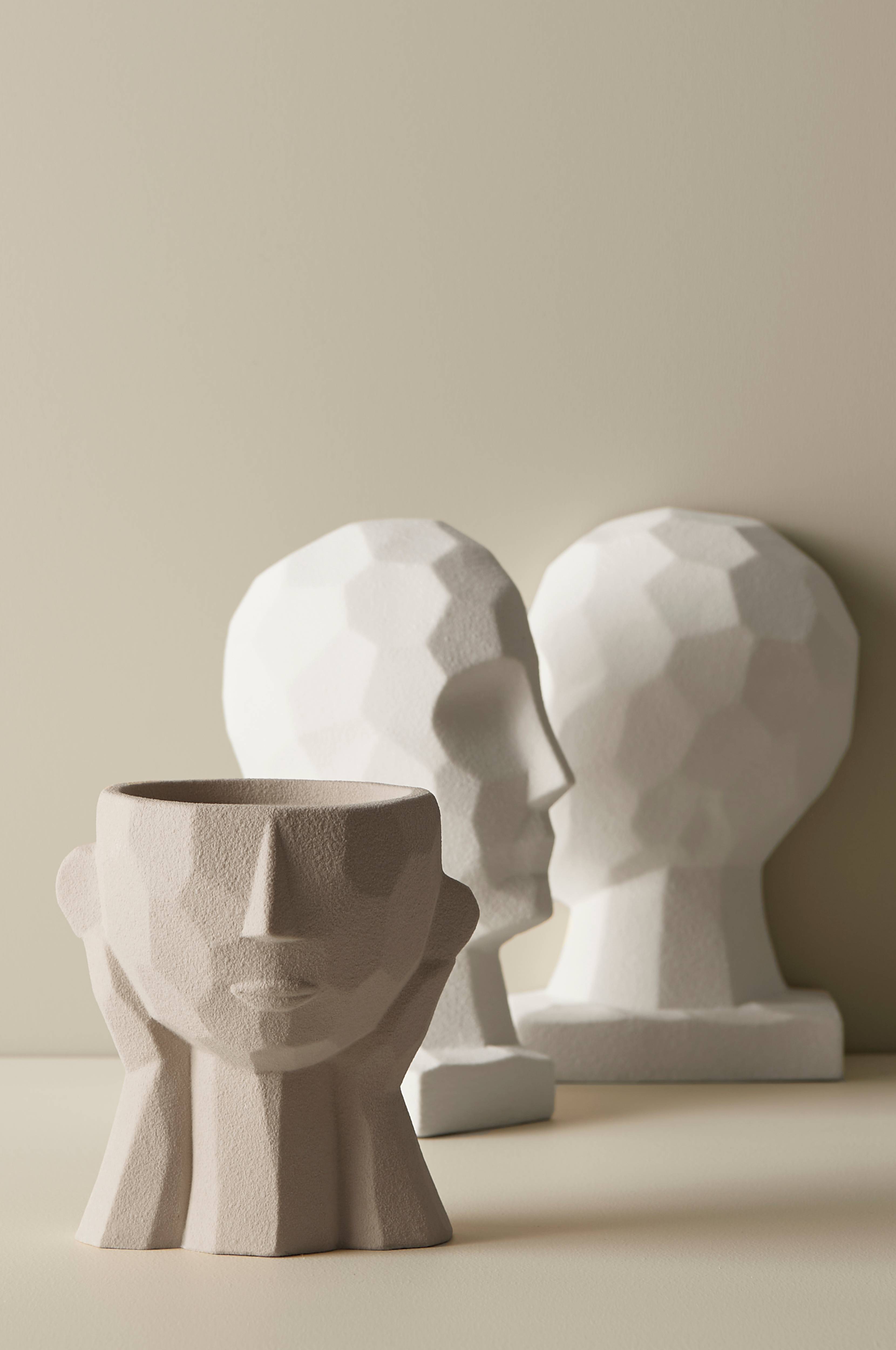 Dekoration eller lysholder af porcelæn med struktureret, mat finish. Passer til bloklys. Højde 12,5 cm. Bredde forneden 10 cm, dybde forneden 6 cm. Diameter foroven ca. 9 cm.
