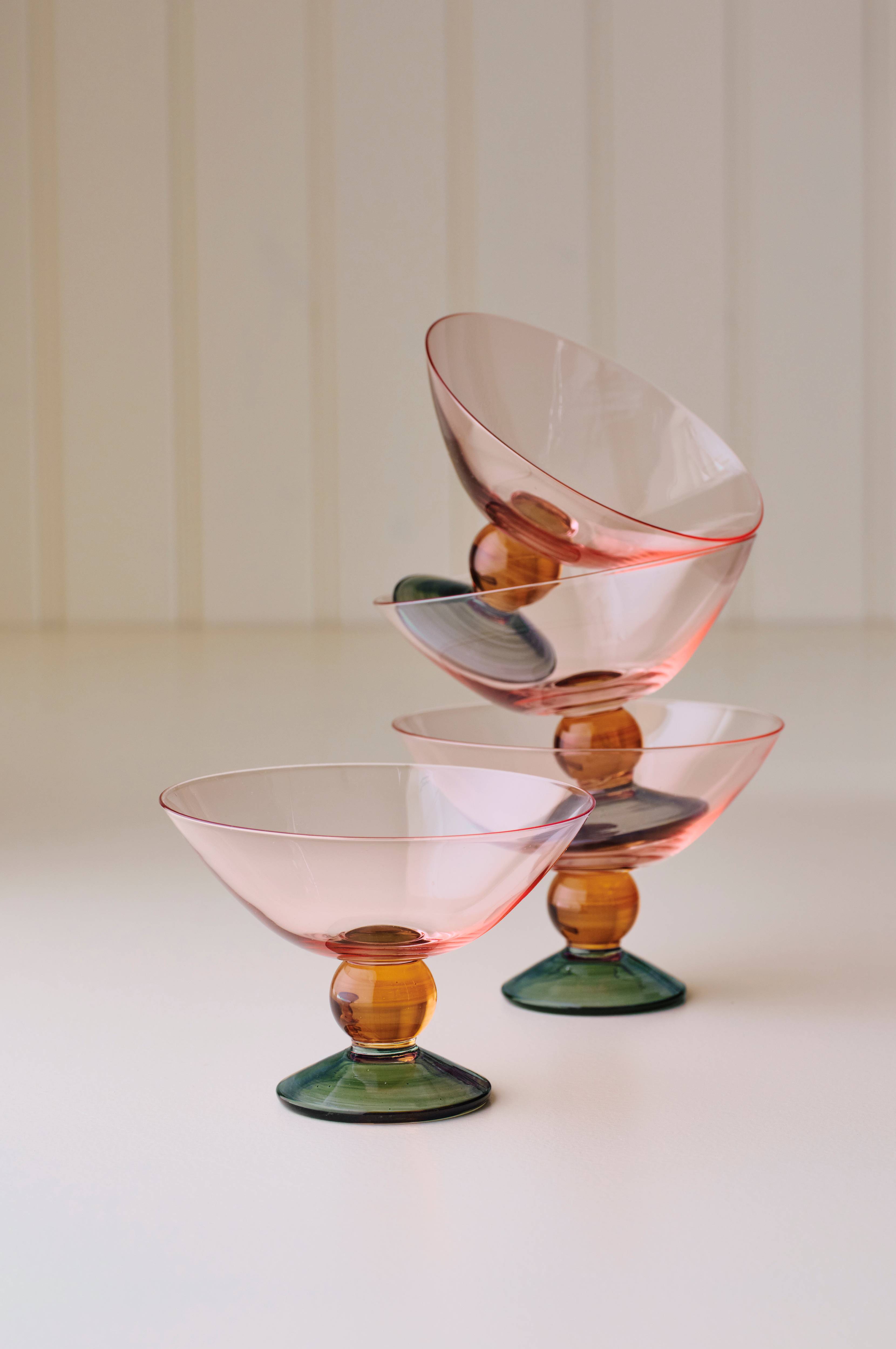 • Fire lave dessertskåle med kontrasterende farver og asymmetrisk form