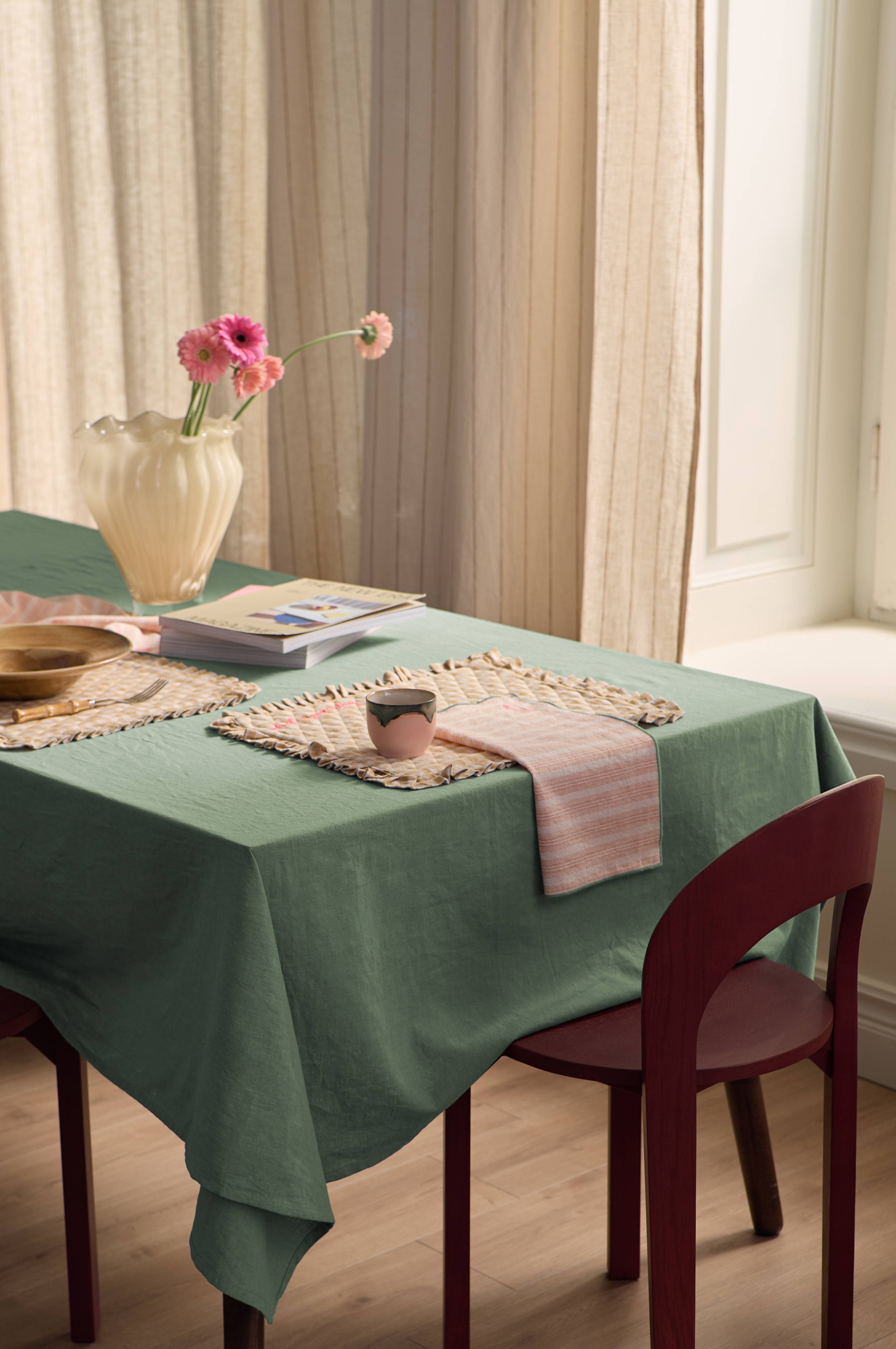 • Ensfarvet dug i bomuld og hør med blød, vasket afslutning