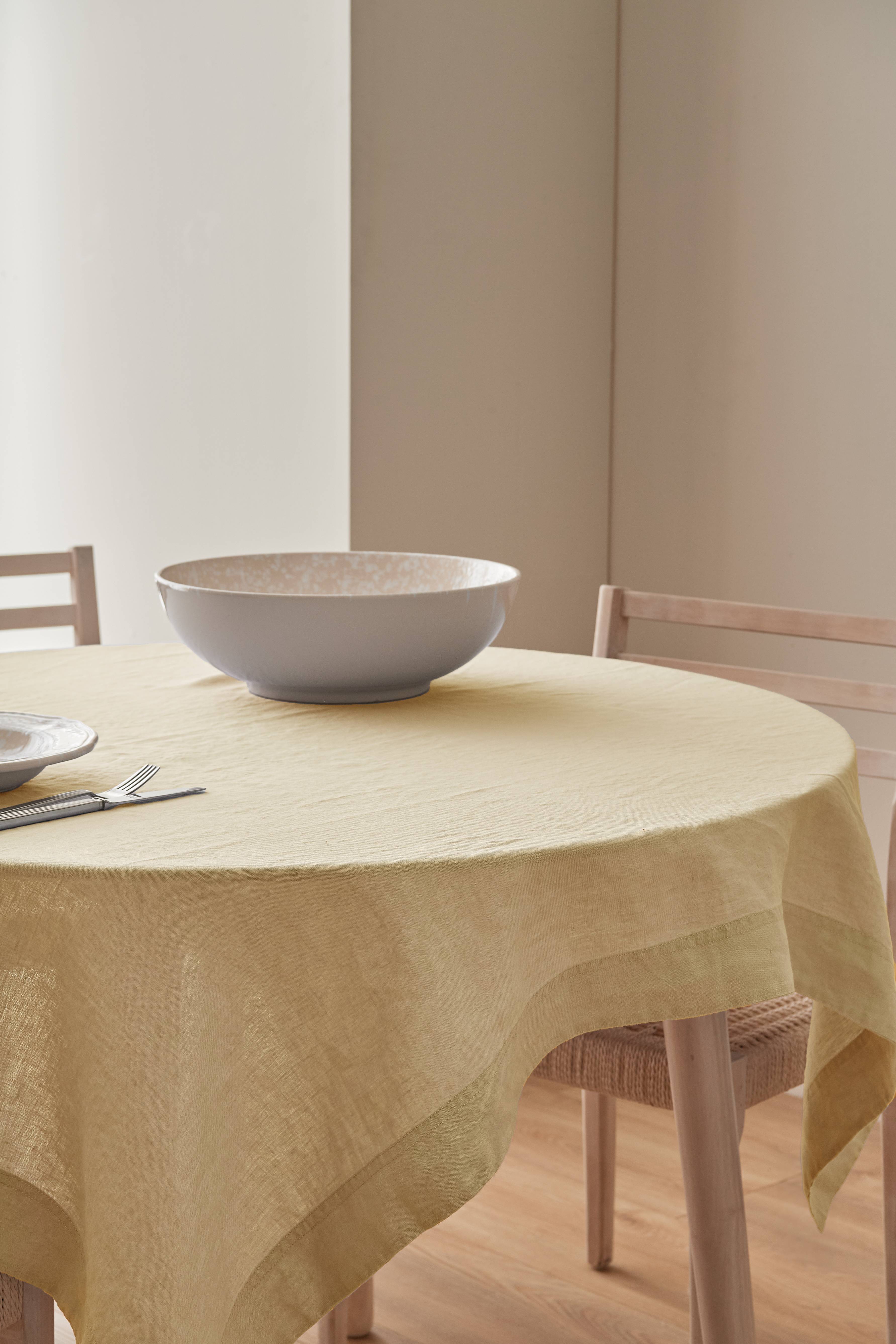 Smuk, naturlig hørdug. Passede godt til et rundt bord med en diameter på 110 cm.