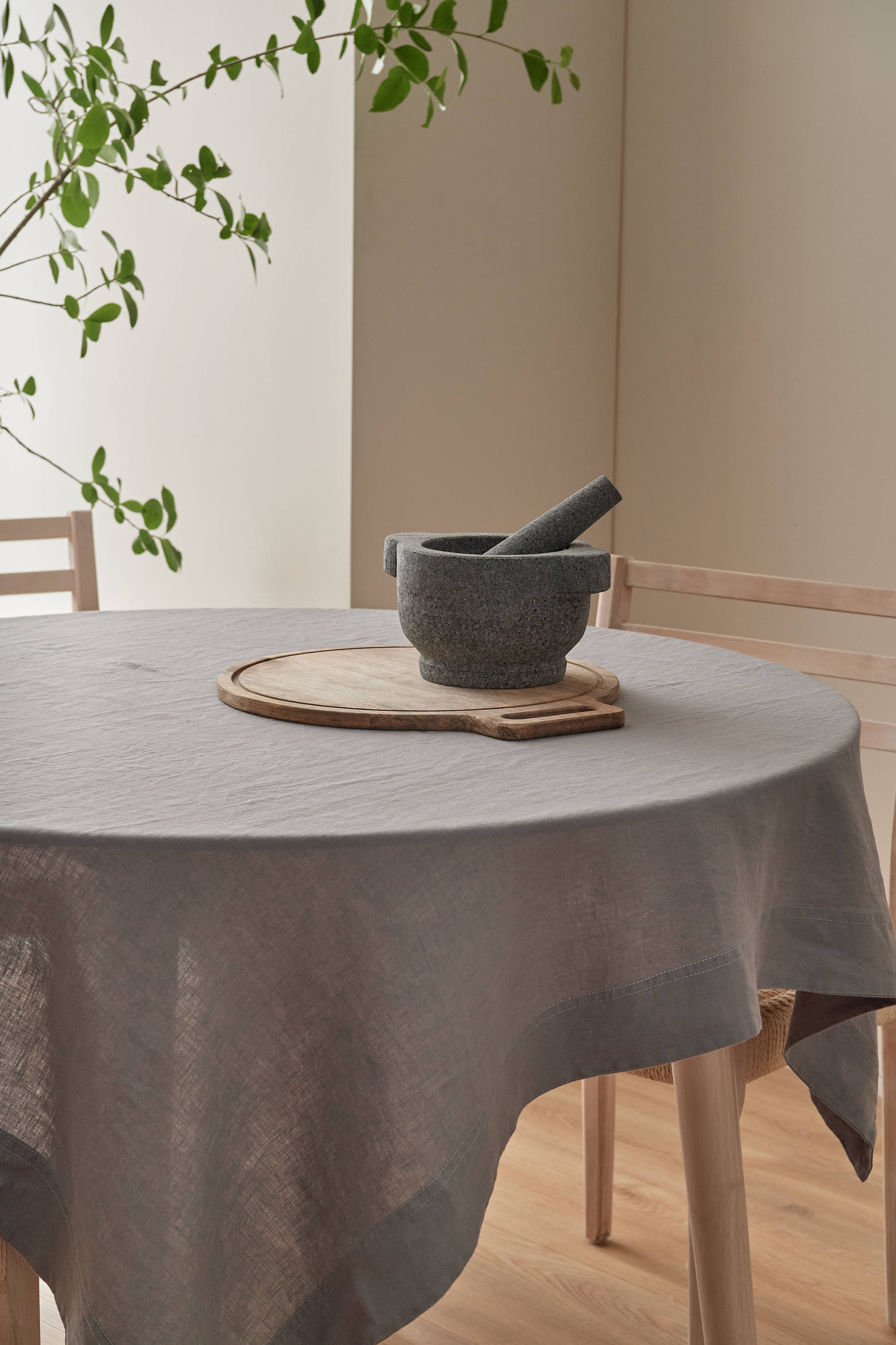 Smuk, naturlig hørdug. Passede godt til et rundt bord med en diameter på 110 cm.