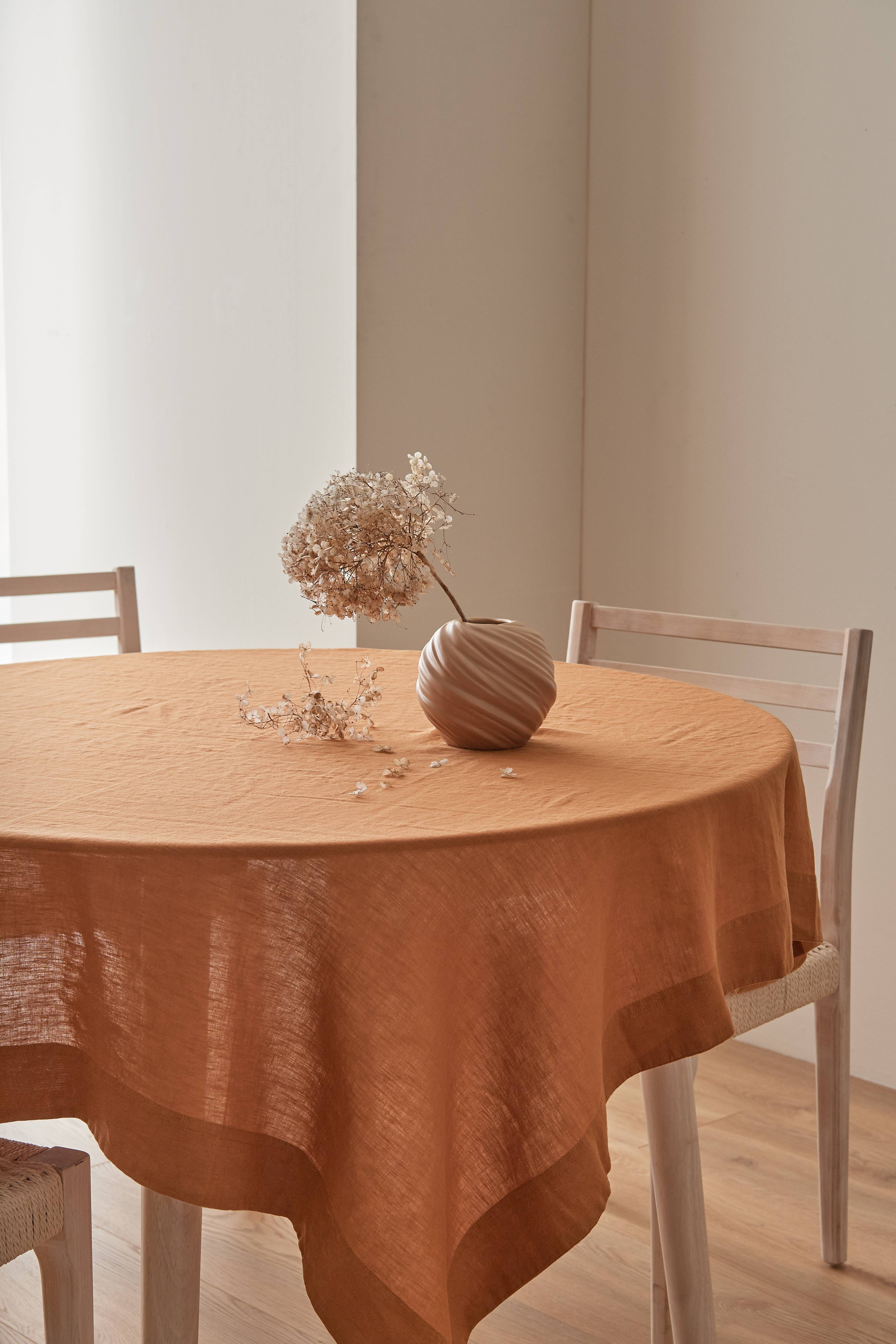 Smuk, naturlig hørdug. Passede godt til et rundt bord med en diameter på 110 cm.