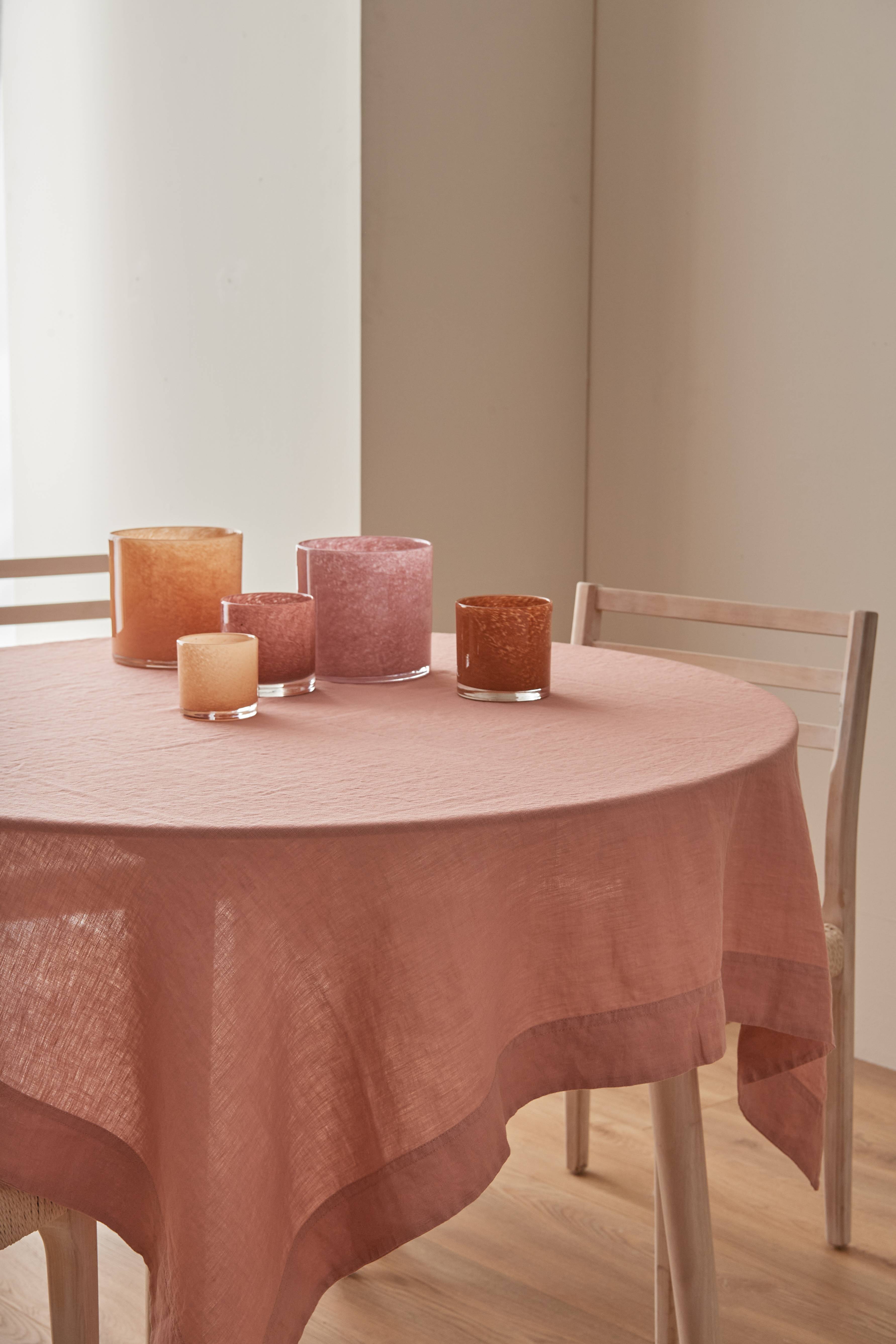 Smuk, naturlig hørdug. Passede godt til et rundt bord med en diameter på 110 cm.