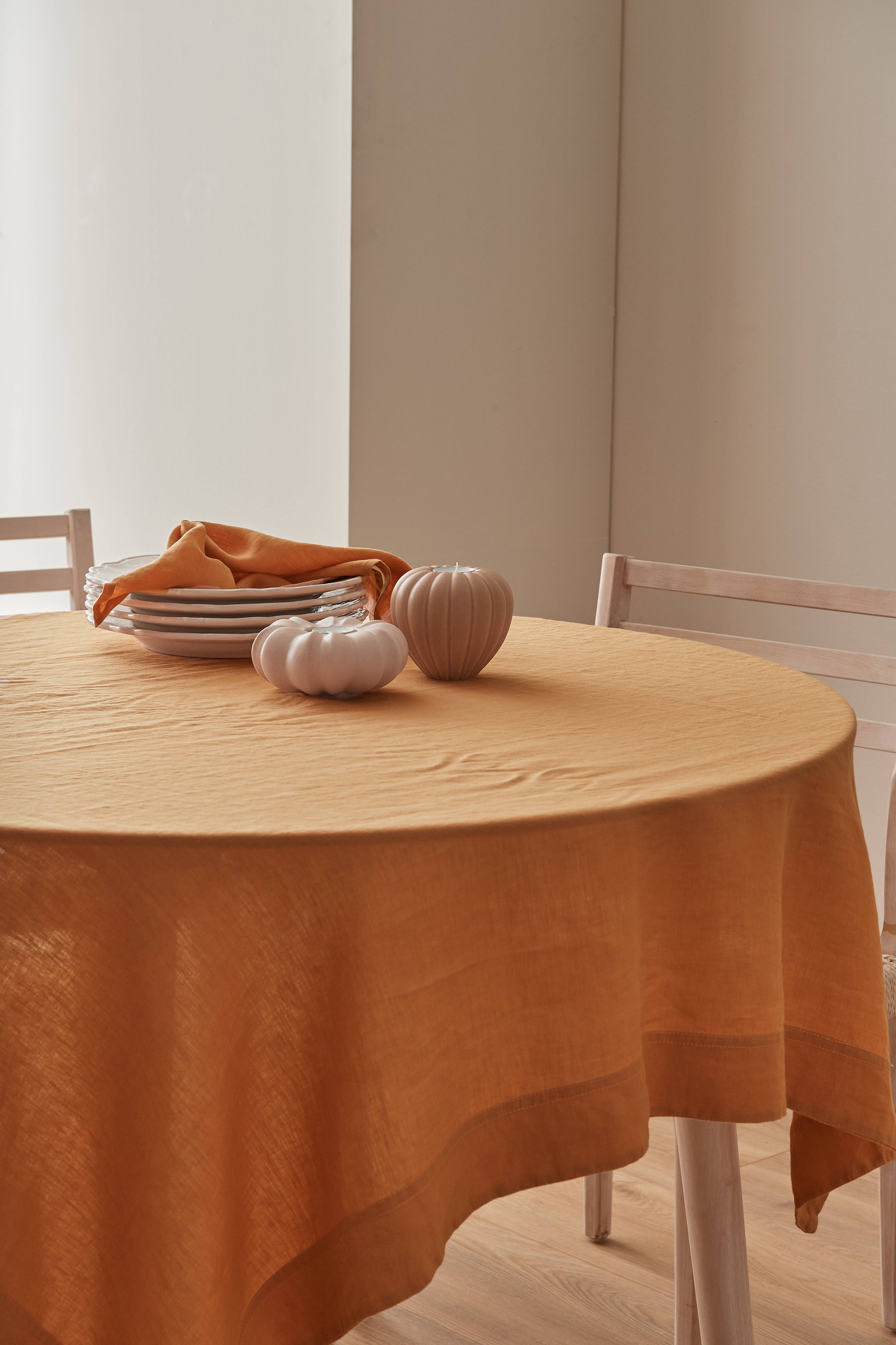 Smuk, naturlig hørdug. Passede godt til et rundt bord med en diameter på 110 cm.