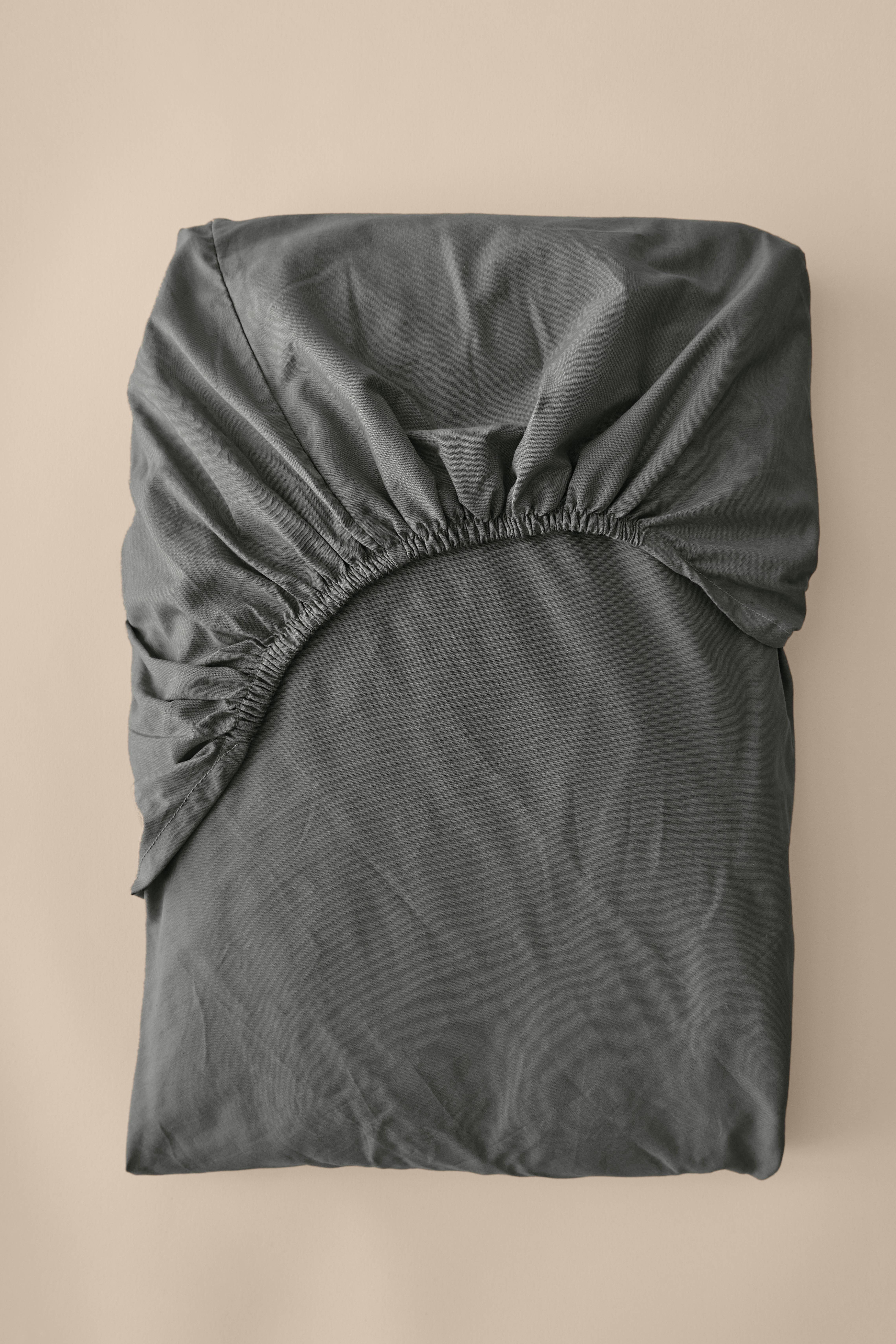Faconsyet lagen i blød bomuld. Trådtæthed 144 TC. Elastikbånd i hjørnerne. Hjørneelastik 25 cm. Passer til madrasser op til 10 cm.
