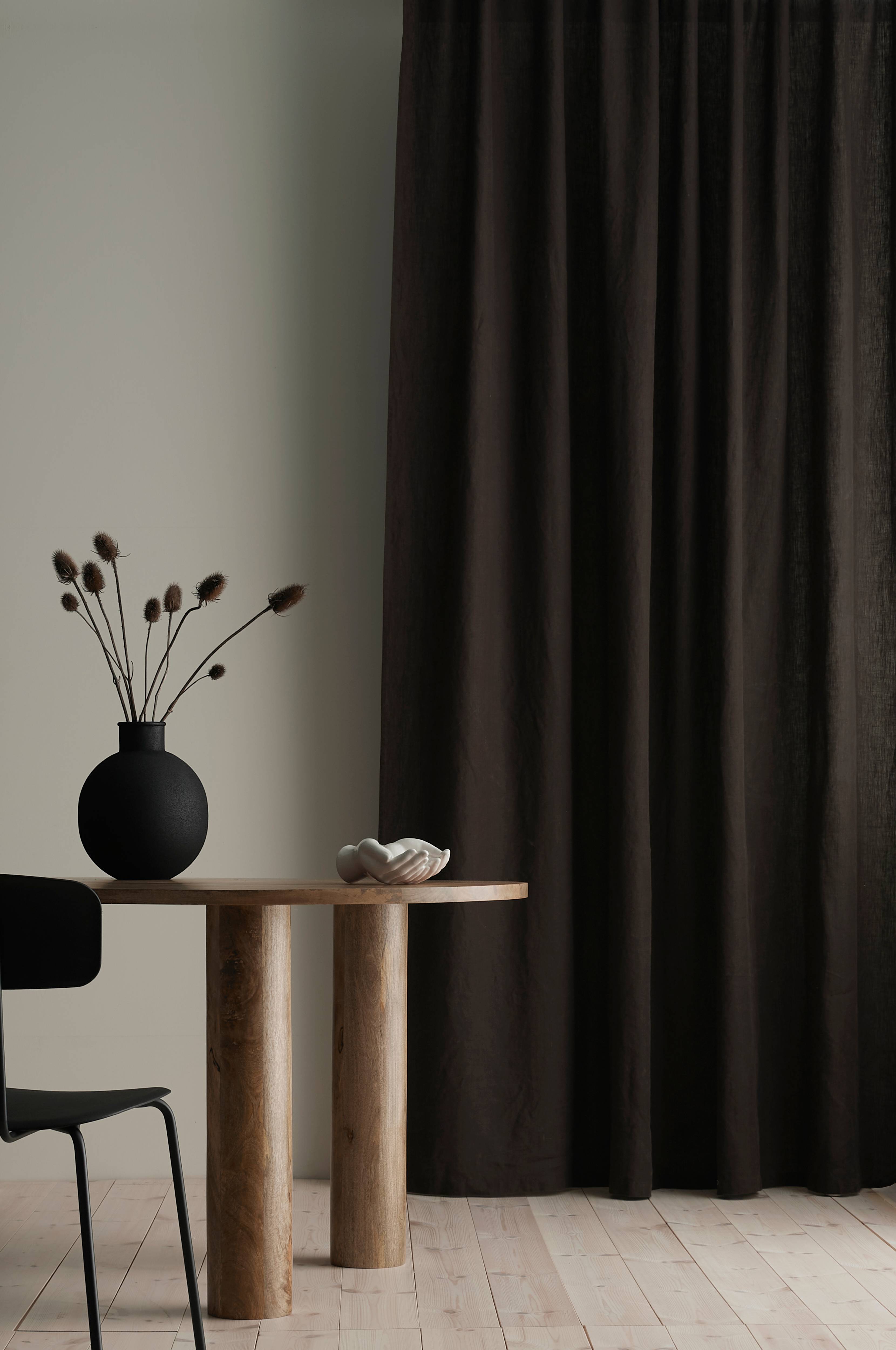 Gardinlængder med rynkebånd og multibånd som gør, at du enten kan hænge gardinerne direkte på en gardinstang gennem de skjulte stropper eller anvende ringe og nålekroge (ikke fingerkroge). Kan også bruges med rynkebåndskrog. Af vasket hør med smuk struktur. Snoren i rynkebåndet gør, at du let kan skabe ensartede, flotte læg. Tørretumles på lav temperatur for at beholde en blød følelse og det vaskede look. Str. 240x300 cm. Sælges i 1-pak.