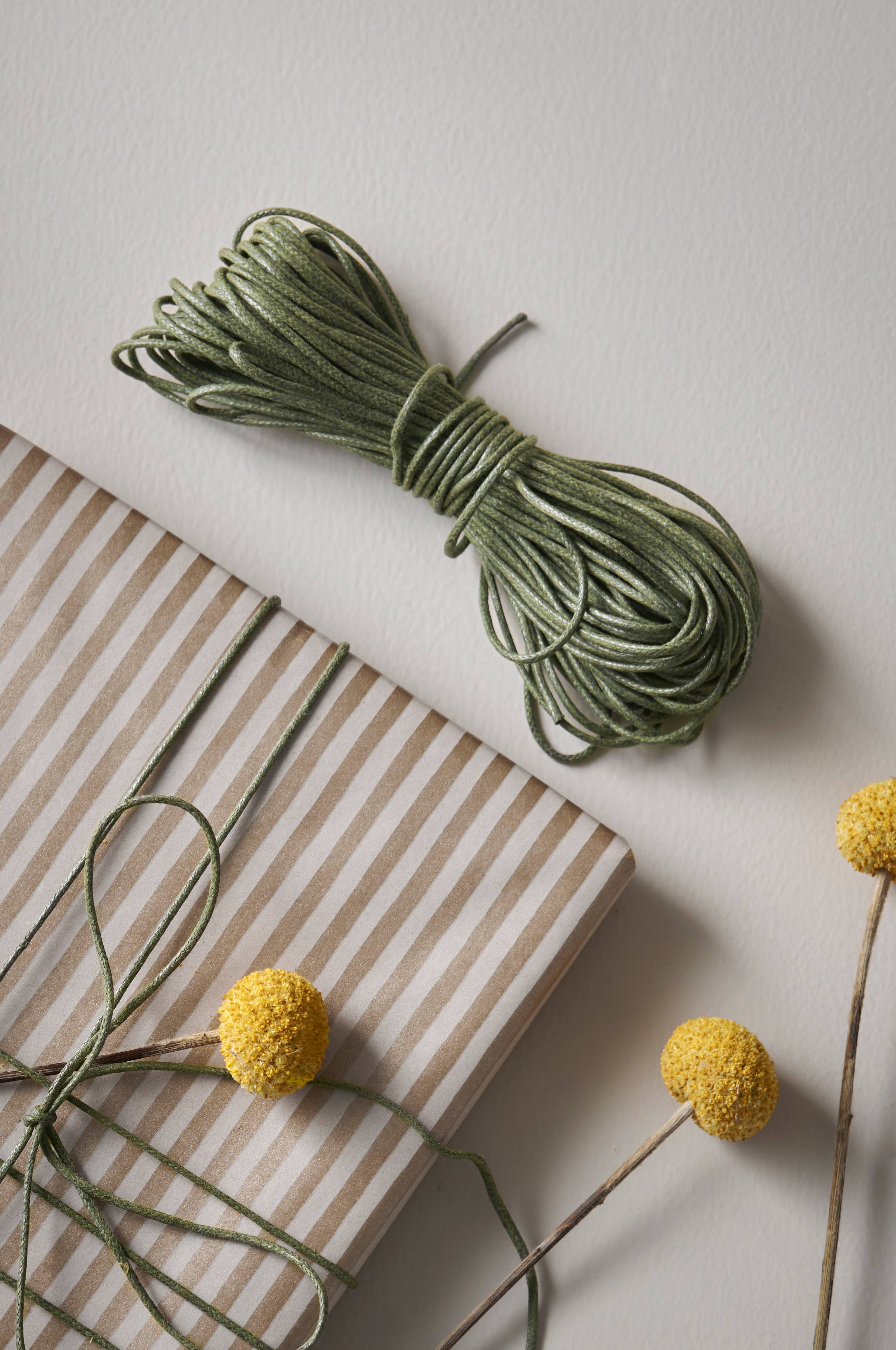 Rundt gavebånd af vokset bomuld. Længde 20 m, Ø 2 mm.