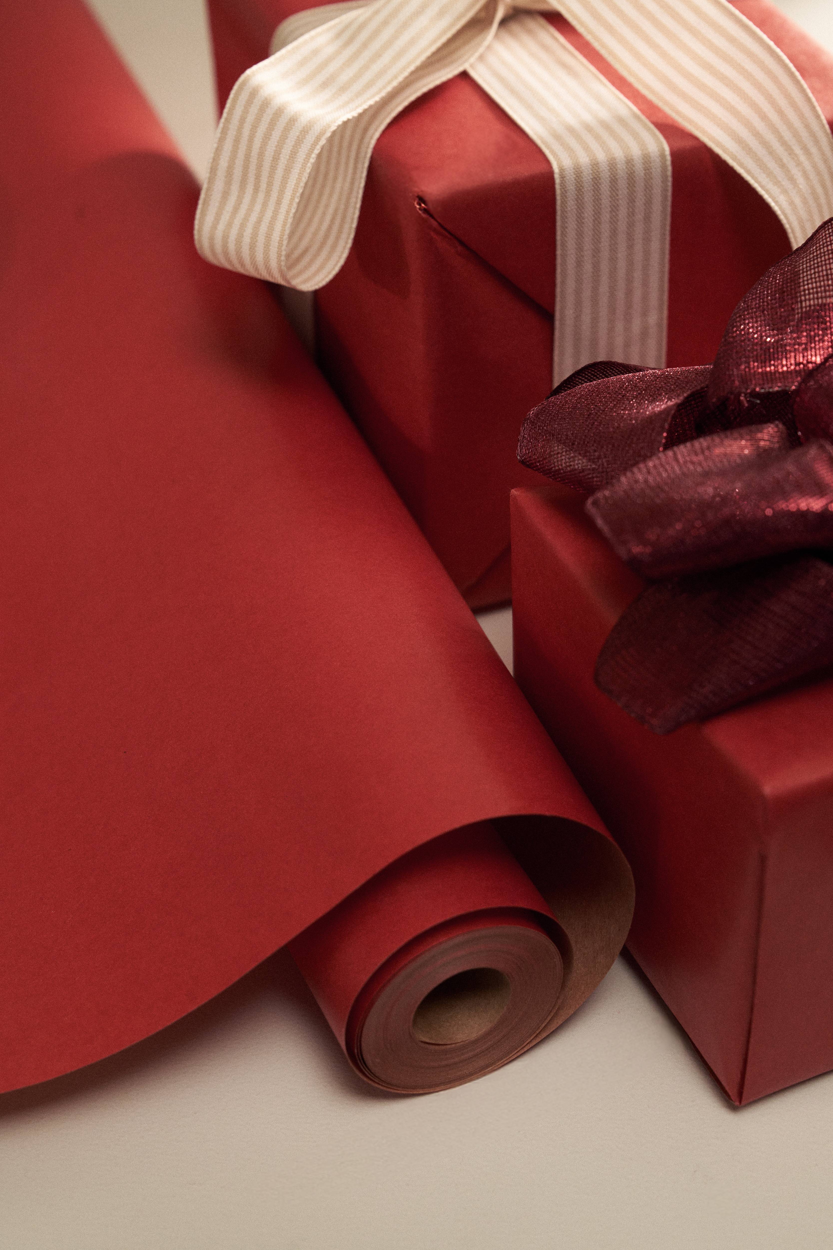 Printet, ensfarvet brunt papir i kraftig kvalitet. 80 g. Bredde 57 cm. Længde pr. rulle 10 meter.