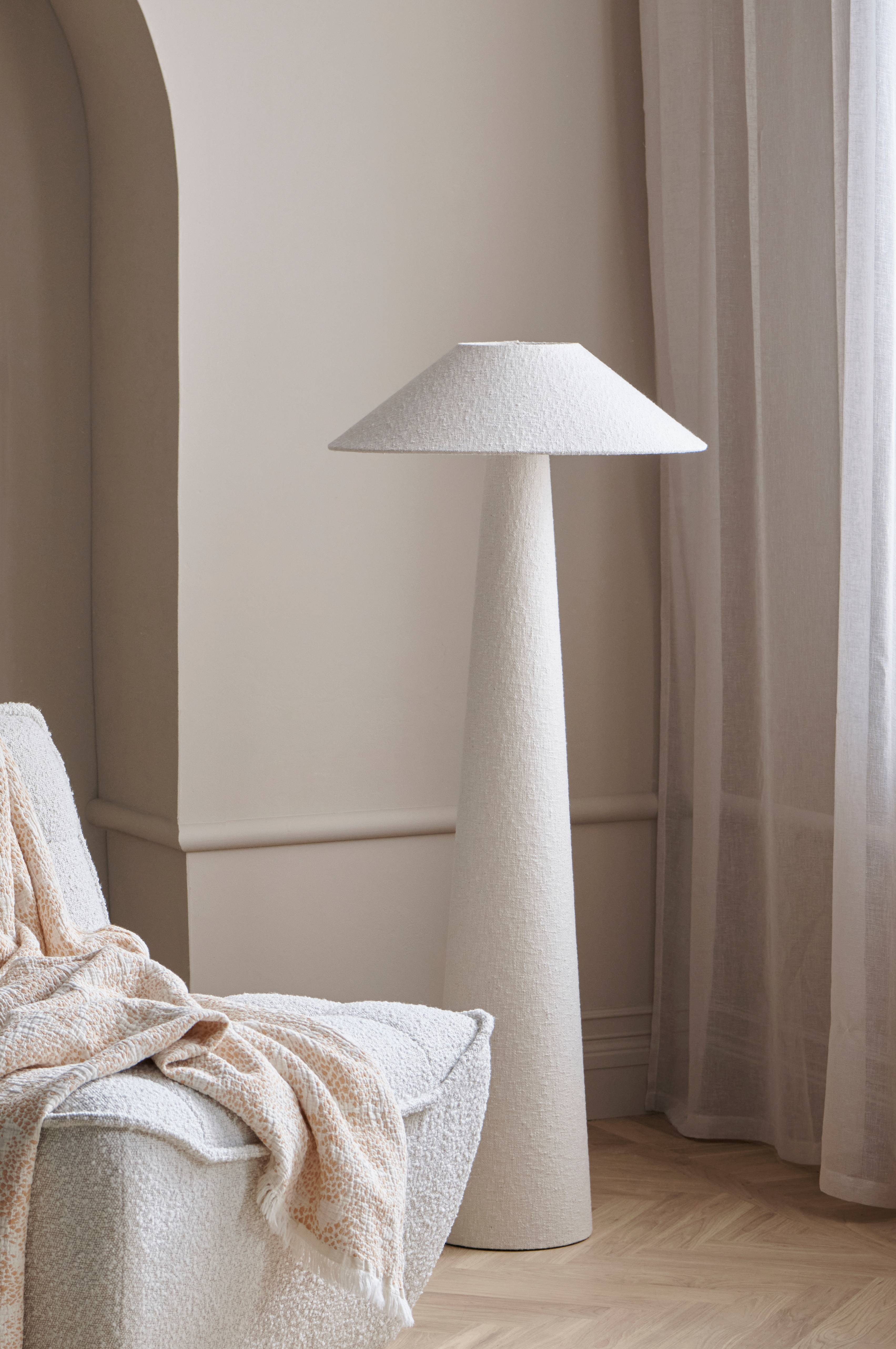 • Gulvlampe i Bouclé-stof• Diameter på lampefod: 22 cm• Højde på lampefod: 108 cm• Lampeskærmens diameter: 50 cm• Lampeskærmens højde: 22 cm• Pære medfølger ikke