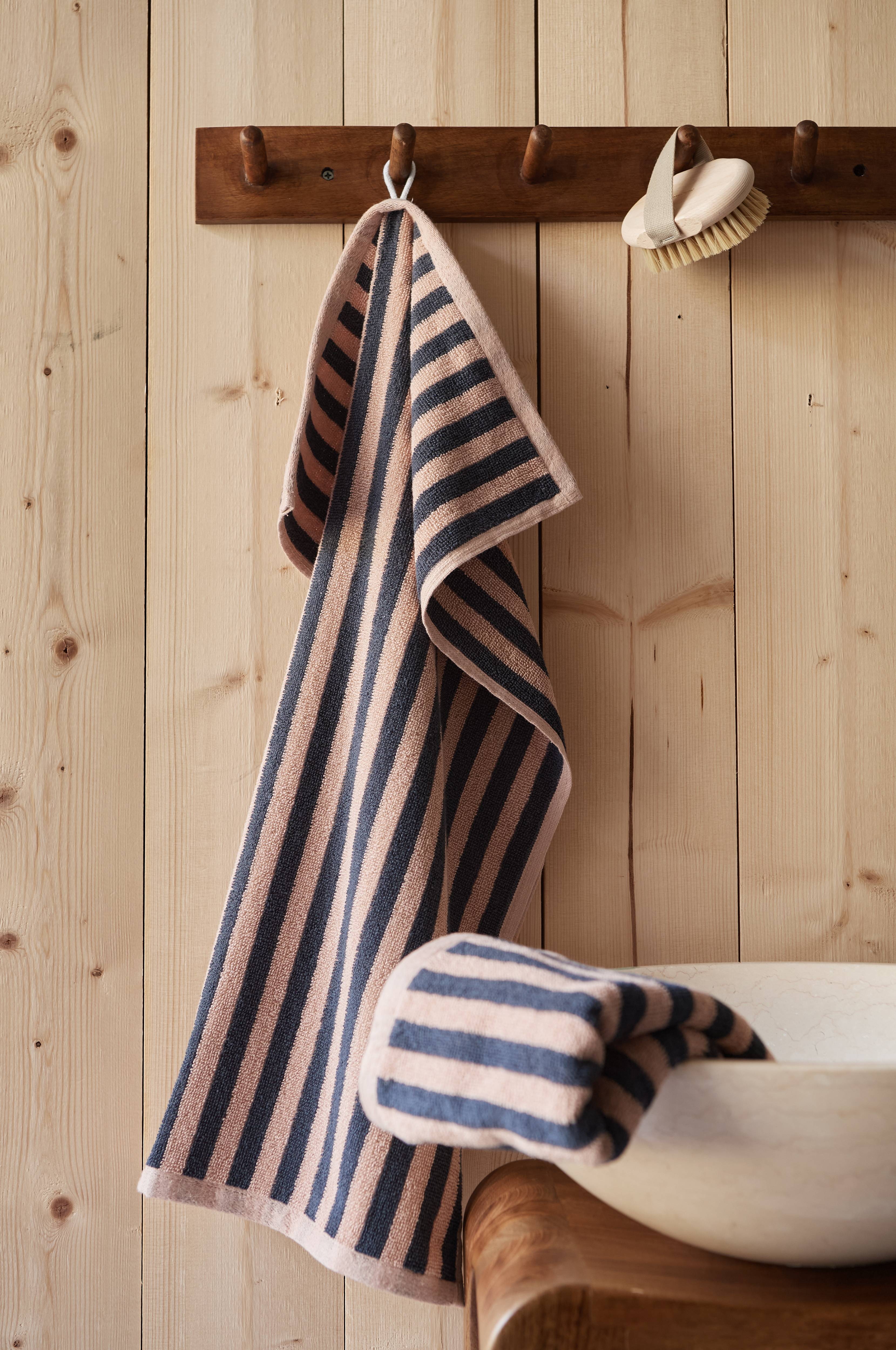 Håndklæde i blød og skøn bomuldsfrotté med garnfarvede striber. Str. 50x70 cm.