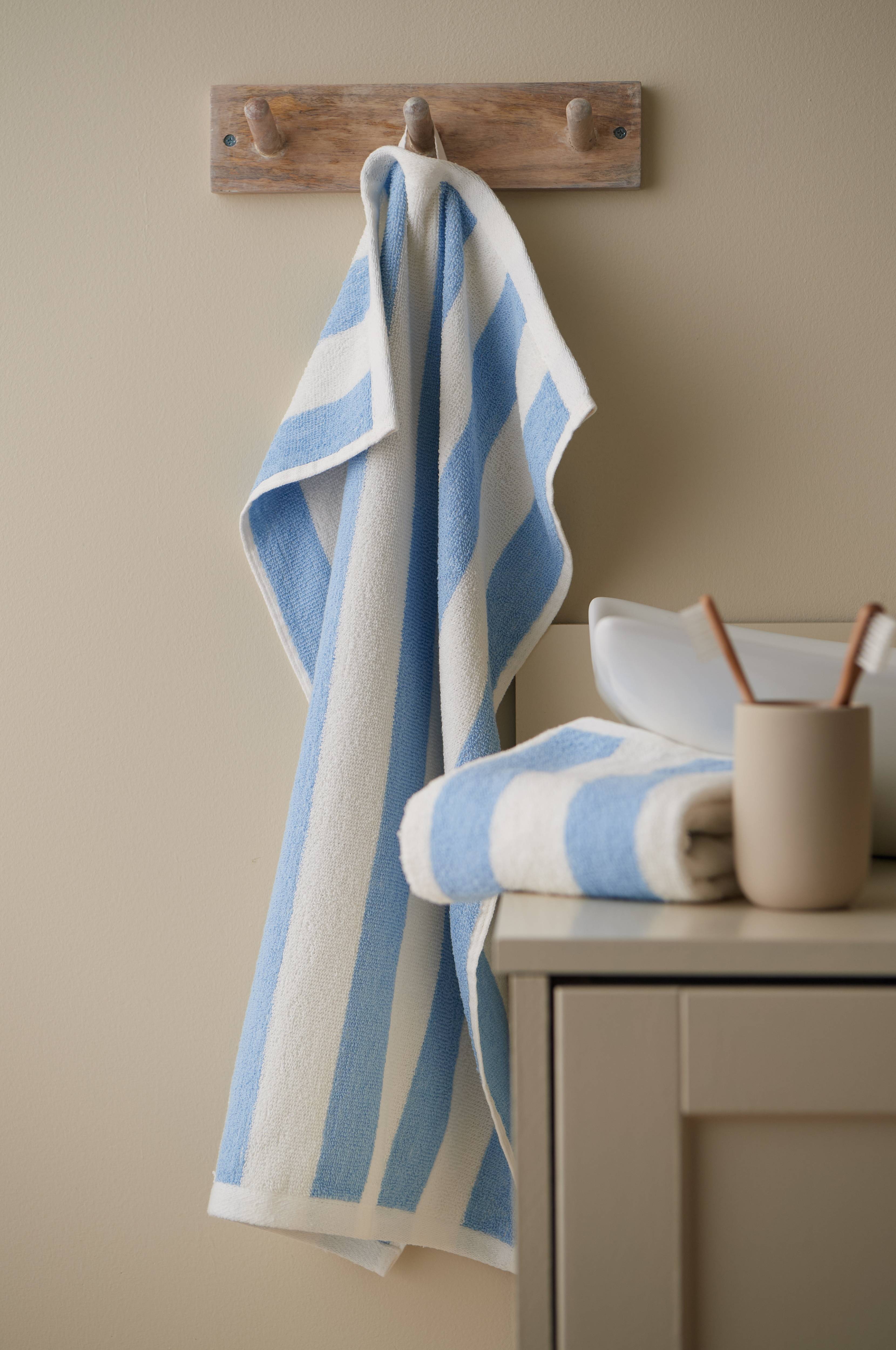 Håndklæde i blød og skøn bomuldsfrotté med garnfarvede striber. Str. 50x70 cm.
