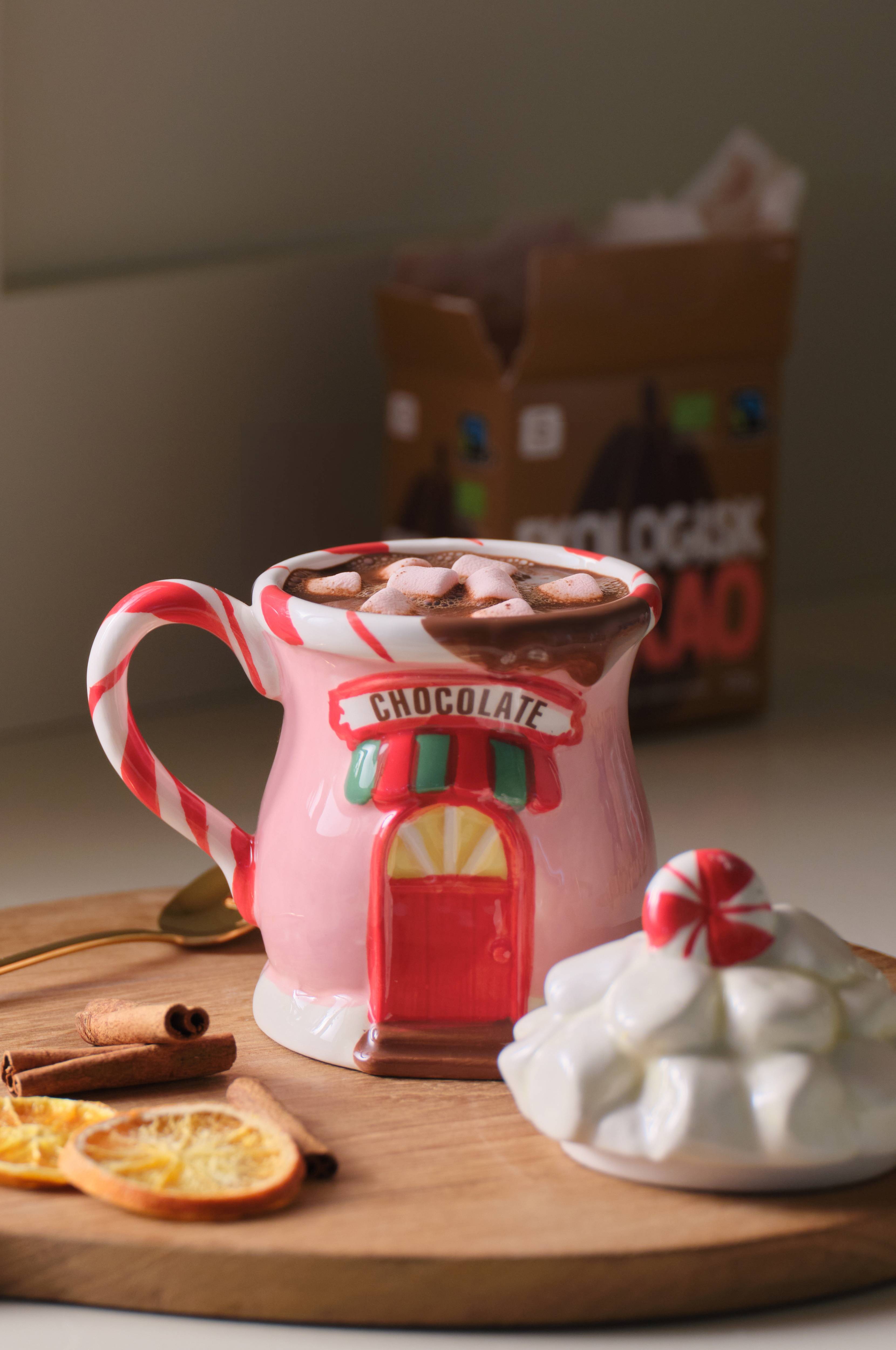 • Krus i form af en kop chokolade med skumfiduser på toppen• Fremstillet af dolomitporcelæn• Låg