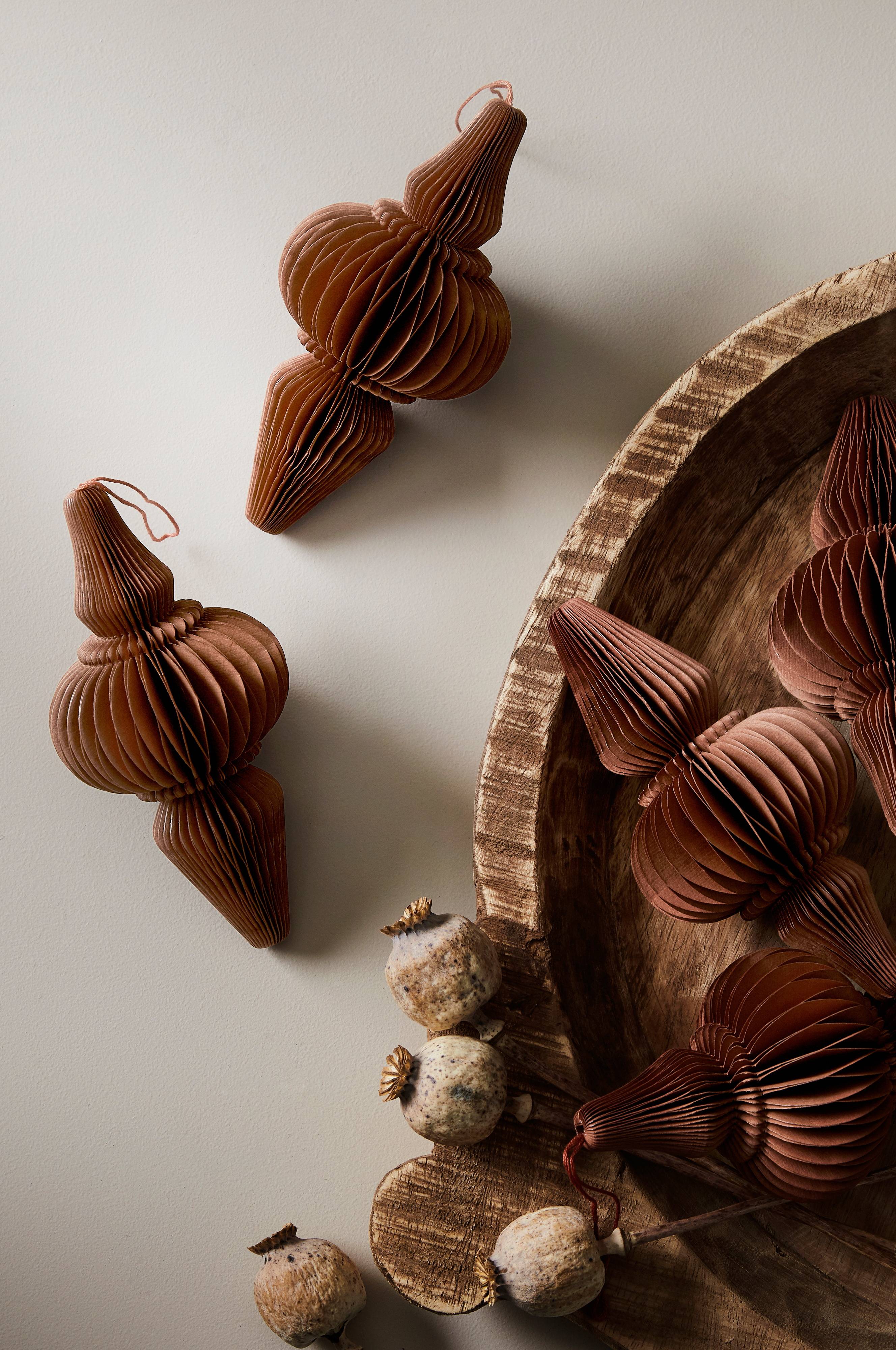 Dekorative papirkvaste i 2-pak med ophæng, perfekte til at hænge på juletræet. 7 cm tekstilsnor til ophængning. Lukkes med magnet, når de ikke bruges. Ø 8 cm, højde 16 cm.