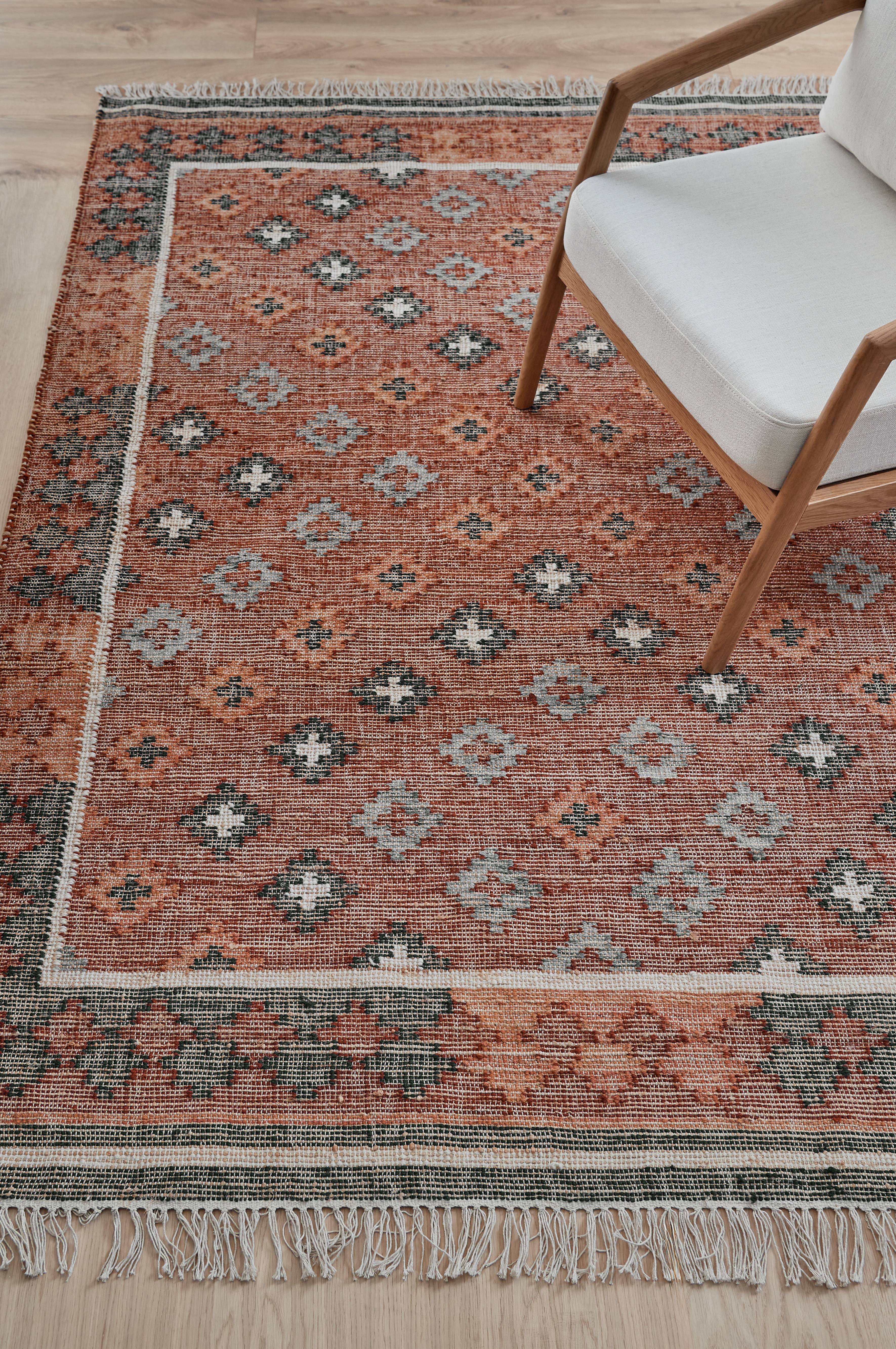 • Håndvævet, mønstret kelimtæppe i blød jute
