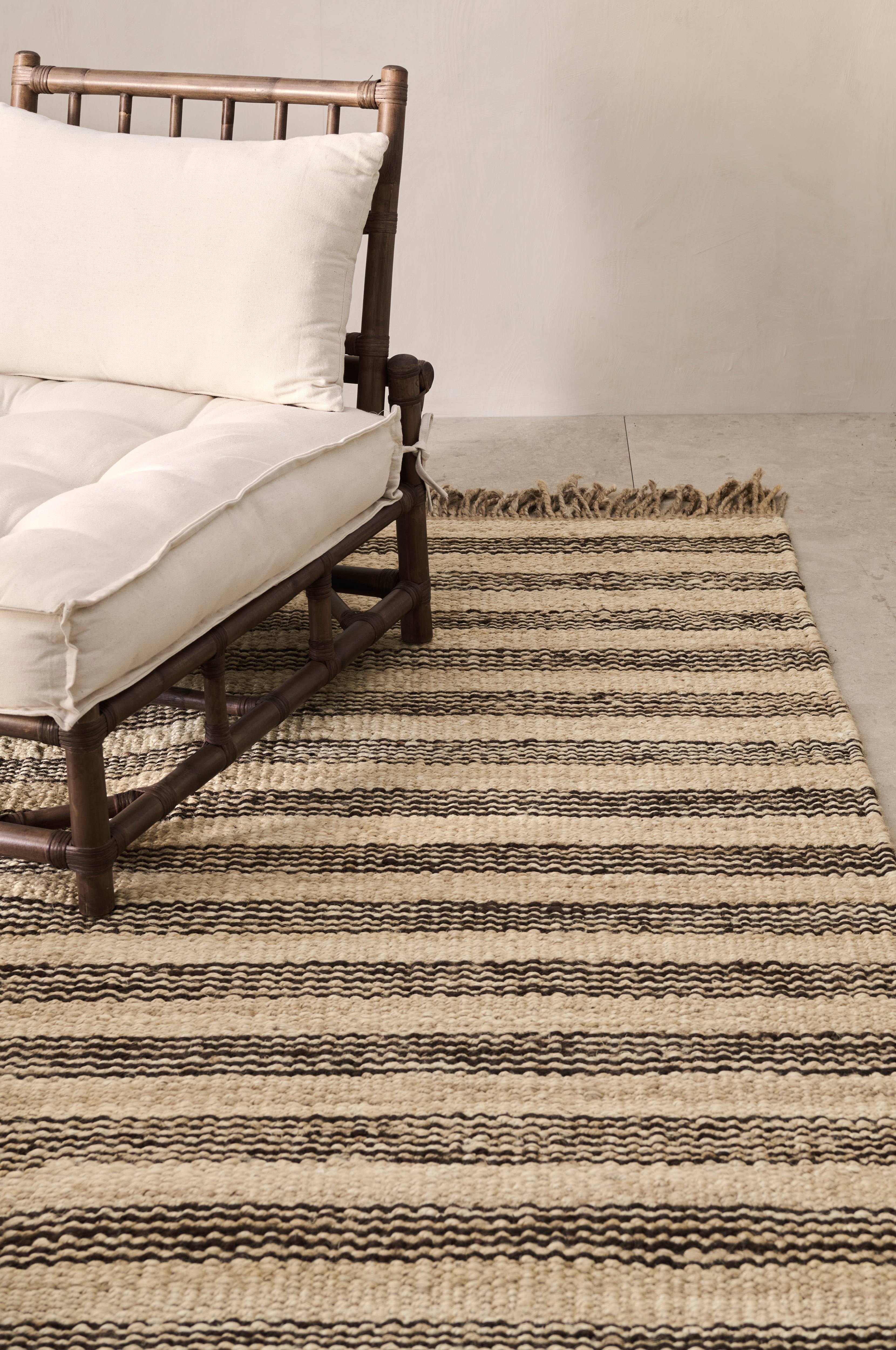 Vævet tæppe i 100% jute med frynser på kortsiderne. Trend af bomuld.