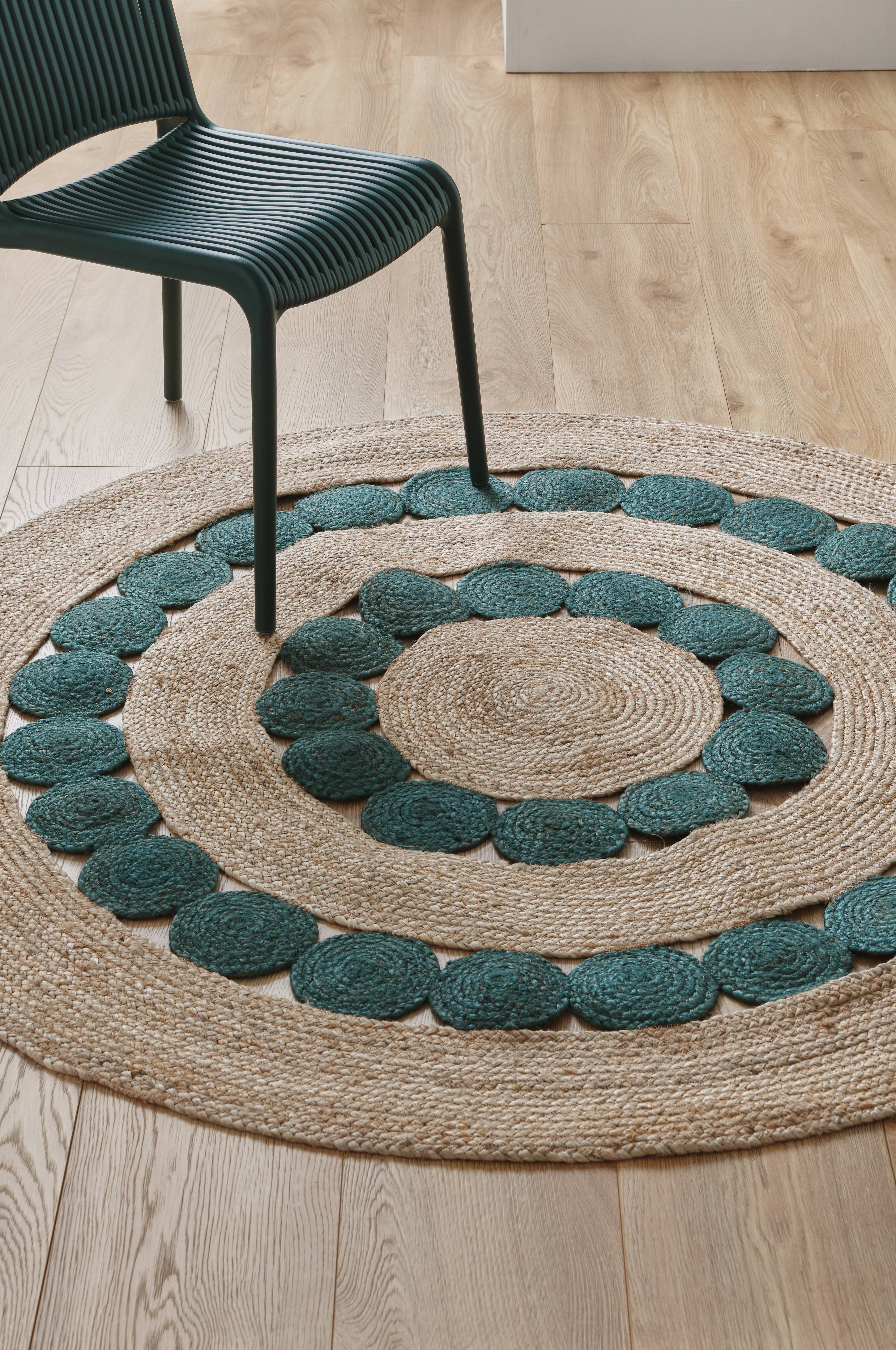 Rundt, flettet tæppe af 100% jute.