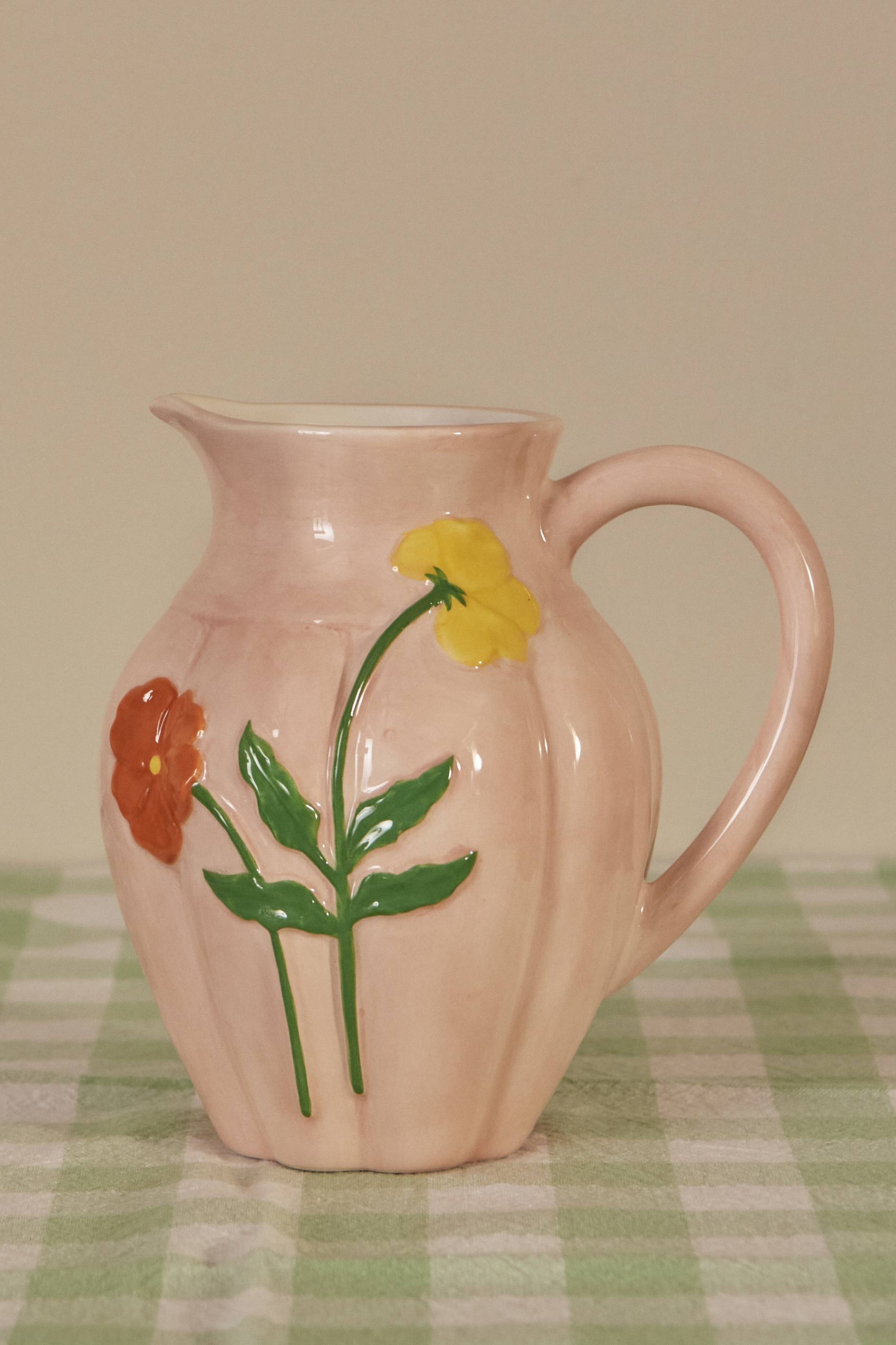 • Kande i stentøj med et dekorativt blomstermotiv• Glaseret afslutning• Glaseret inderside• Vandtæt• Diameter åbning (indvendig diameter): 8,5 cm.