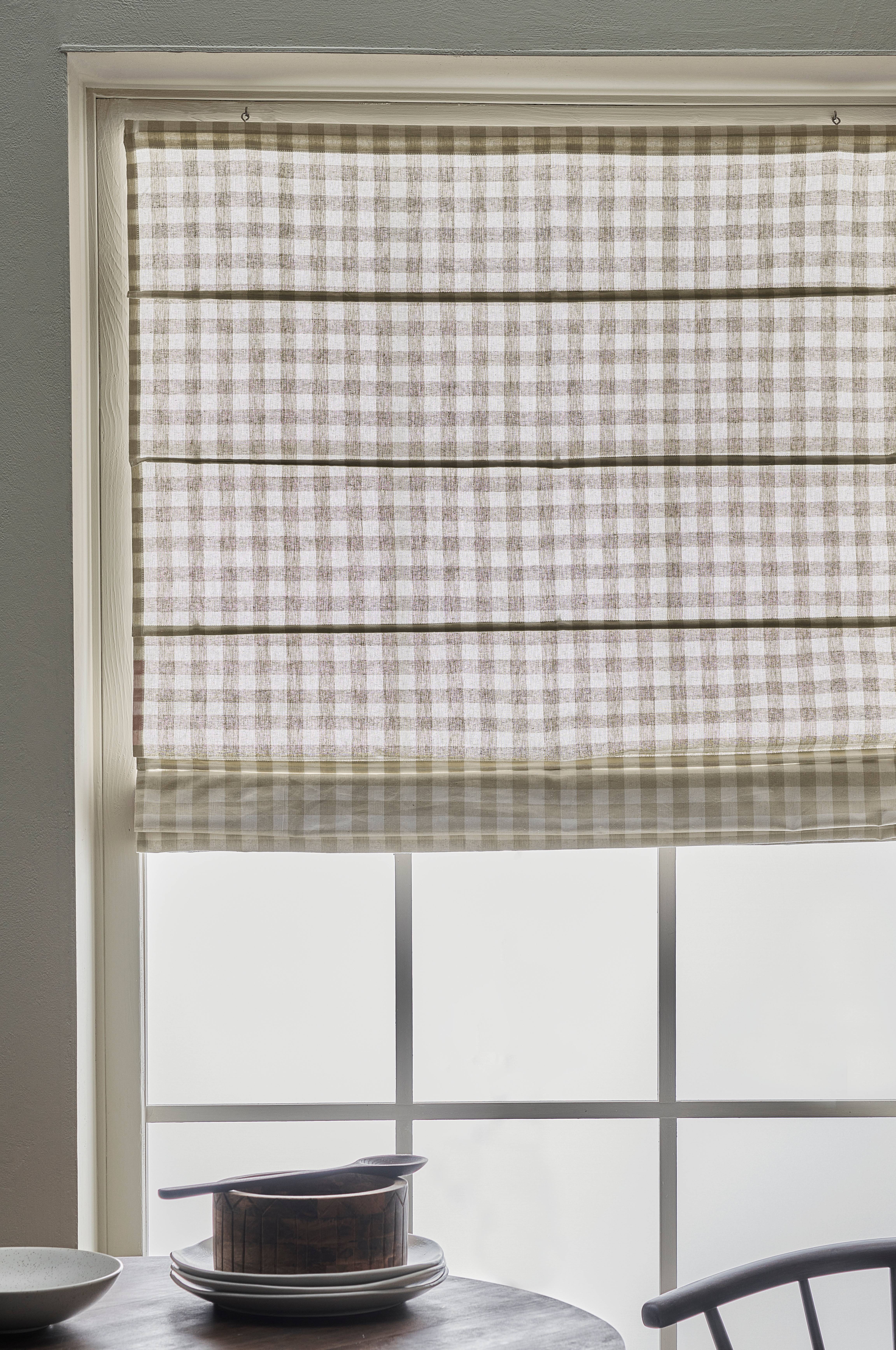 Liftgardin i bomuld med garnfarvede tern. Leveres samlet. Stabil konstruktion med træpinde foroven og liner som løber gennem tværgående pinde. Kroge til ophængning medfølger. Længde 160 cm. Findes i flere forskellige bredde.