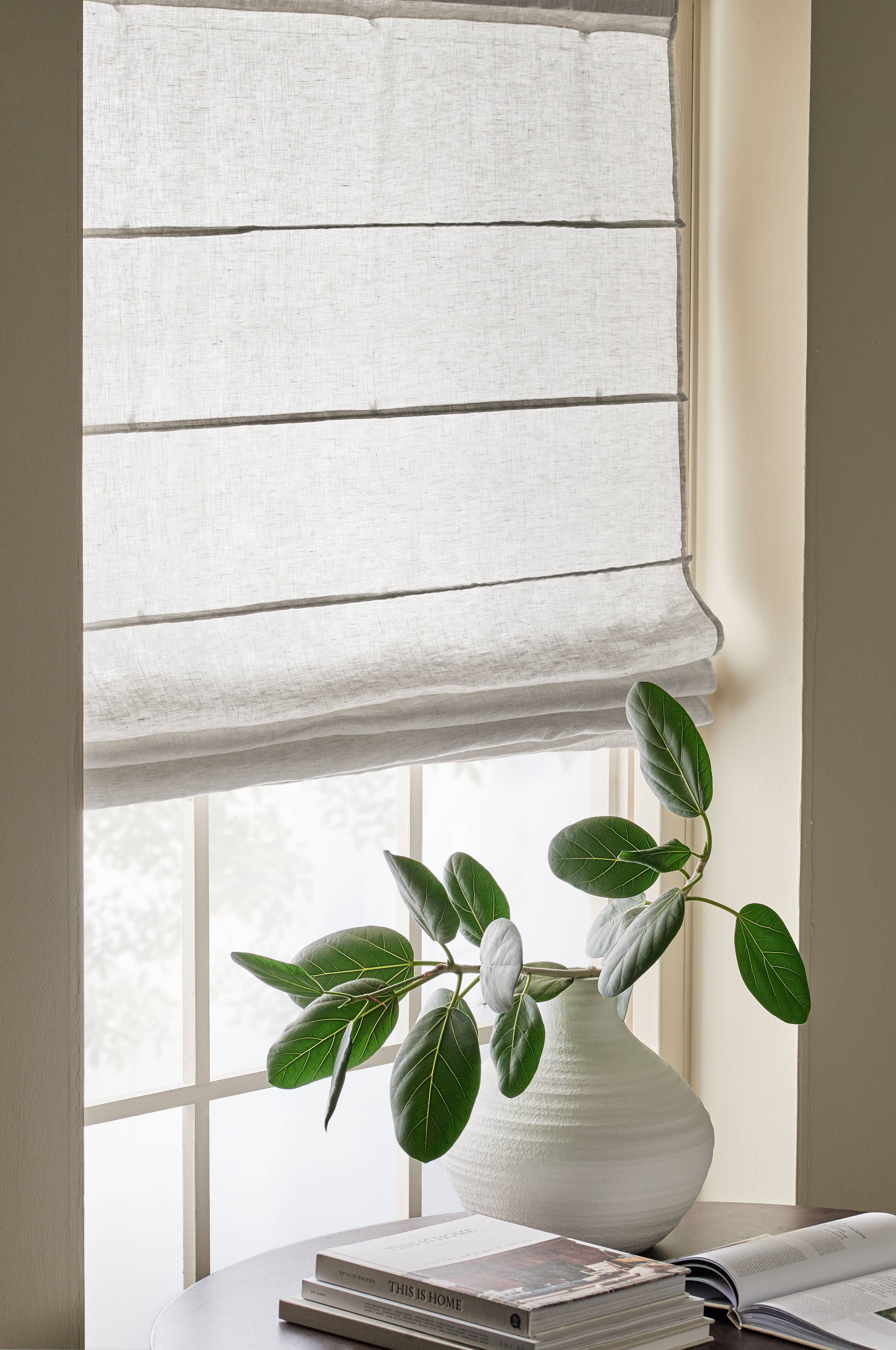 Liftgardin i vasket hør med smuk struktur. Leveres samlet. Stabil konstruktion med træpinde foroven og liner som løber gennem tværgående pinde. Kroge til ophængning samt beslag til at fastgøre træksnoren på væggen medfølger. Længde 160 cm. Findes i flere forskellige bredde.
