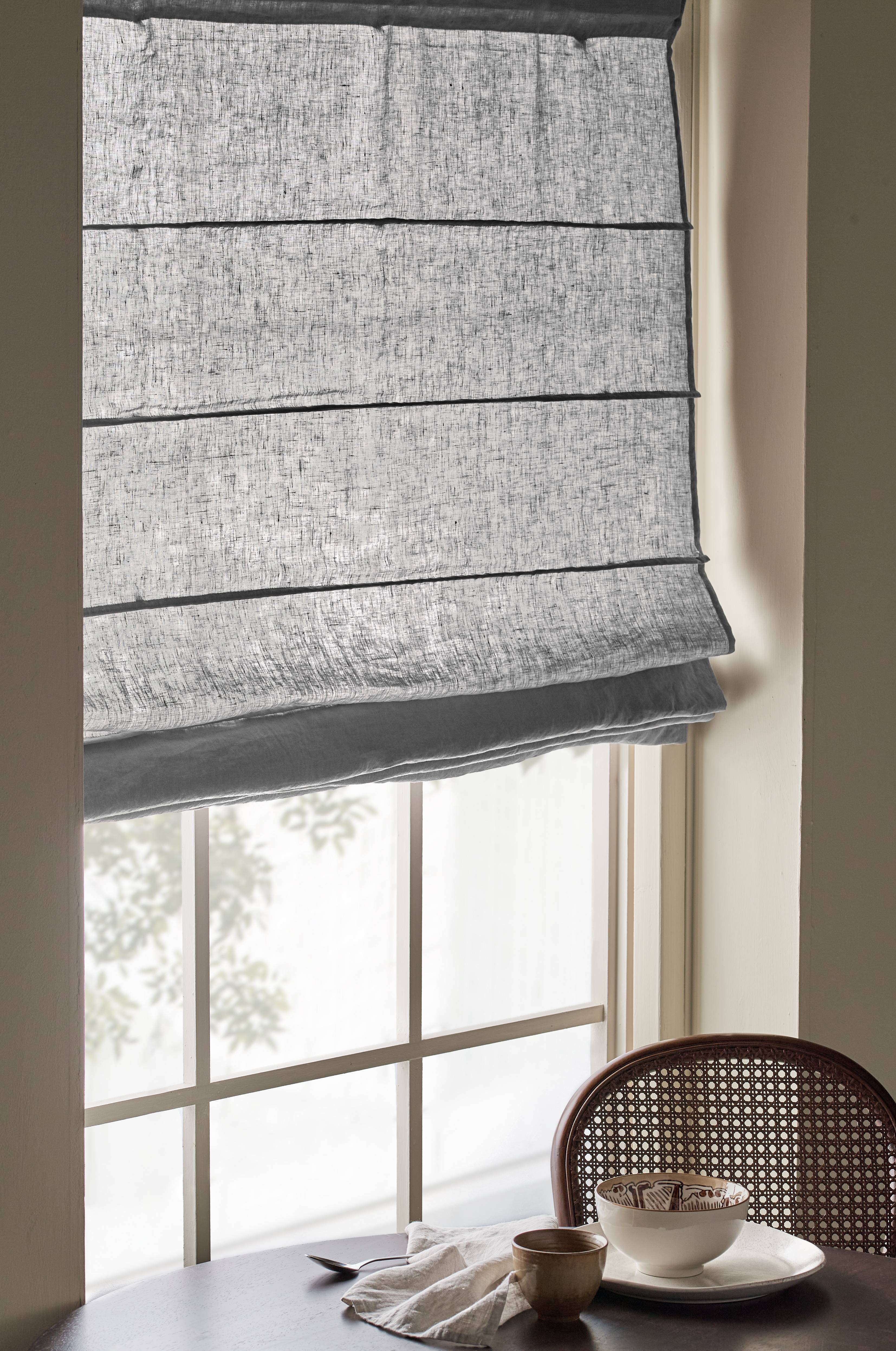 Liftgardin i vasket hør med smuk struktur. Leveres samlet. Stabil konstruktion med træpinde foroven og liner som løber gennem tværgående pinde. Kroge til ophængning samt beslag til at fastgøre træksnoren på væggen medfølger. Længde 160 cm. Findes i flere forskellige bredde.
