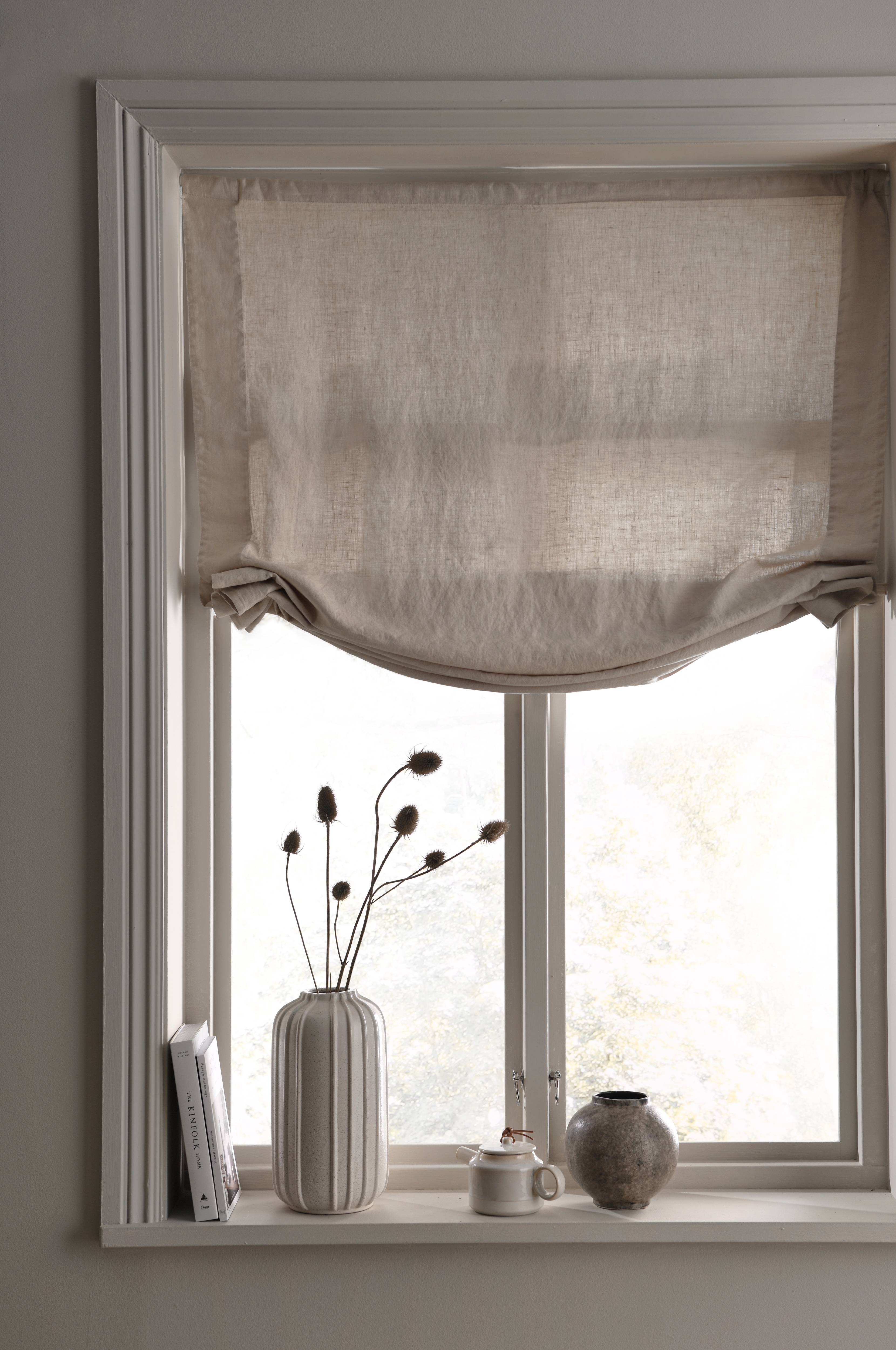 Liftgardin i blødvasket hørkvalitet med 2 træksnore på bagsiden (3 træksnore på str. 140 cm). Leveres færdigmonteret med træpinde foroven og forneden. Kroge til ophængning medfølger. Længde 160 cm. Findes i 4 bredder: 80, 100, 120 og 140 cm.
