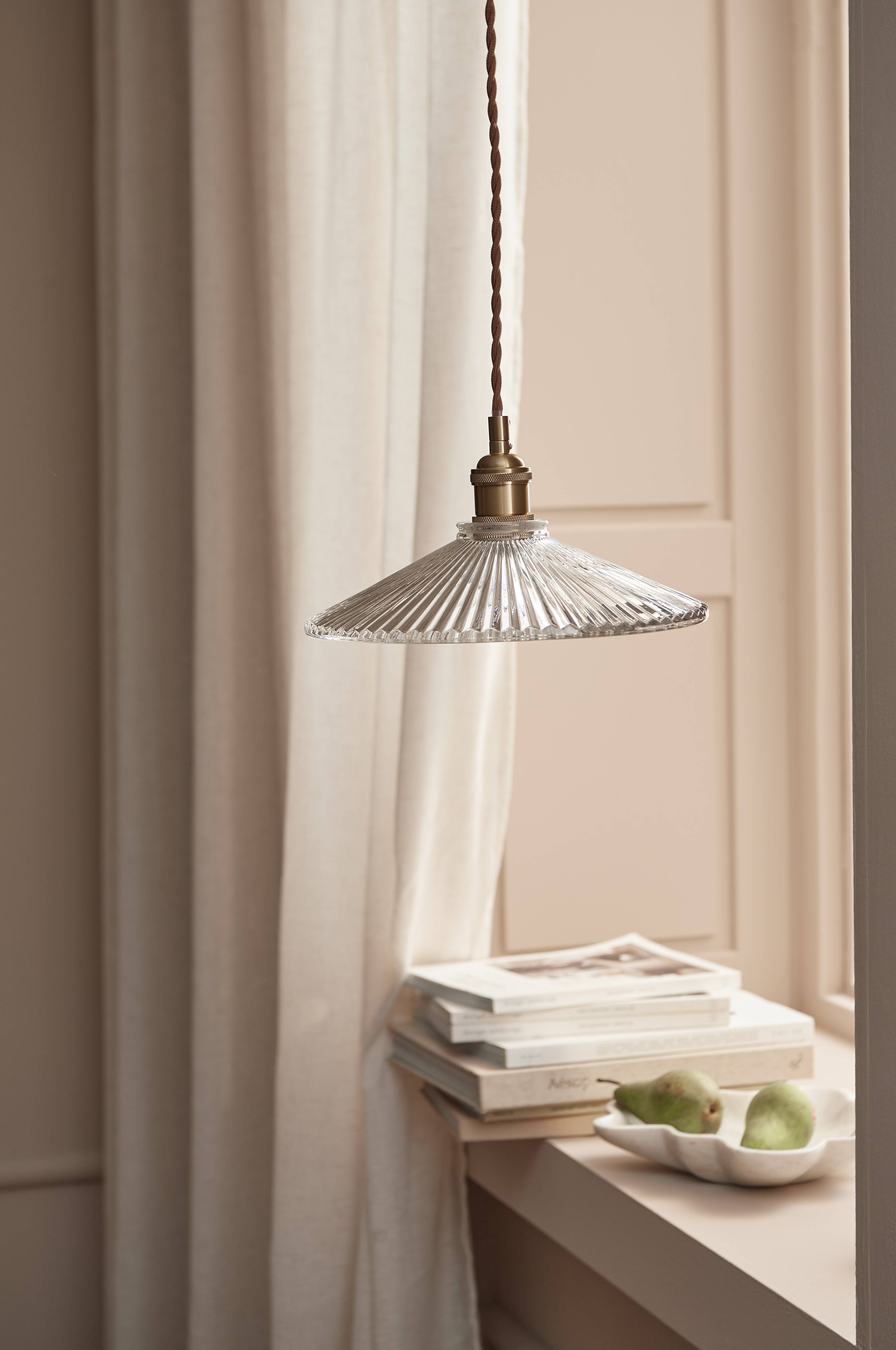 • Loftslampe i gennemsigtig glas og metal med en messingfinish• Tvistet reb• Tagskålens diameter: 12 cm• Pære medfølger ikke• Jordhjul• Loftkontakt medfølger ikke pga. nyt EU-direktiv. Loftkontakter kan købes separat.