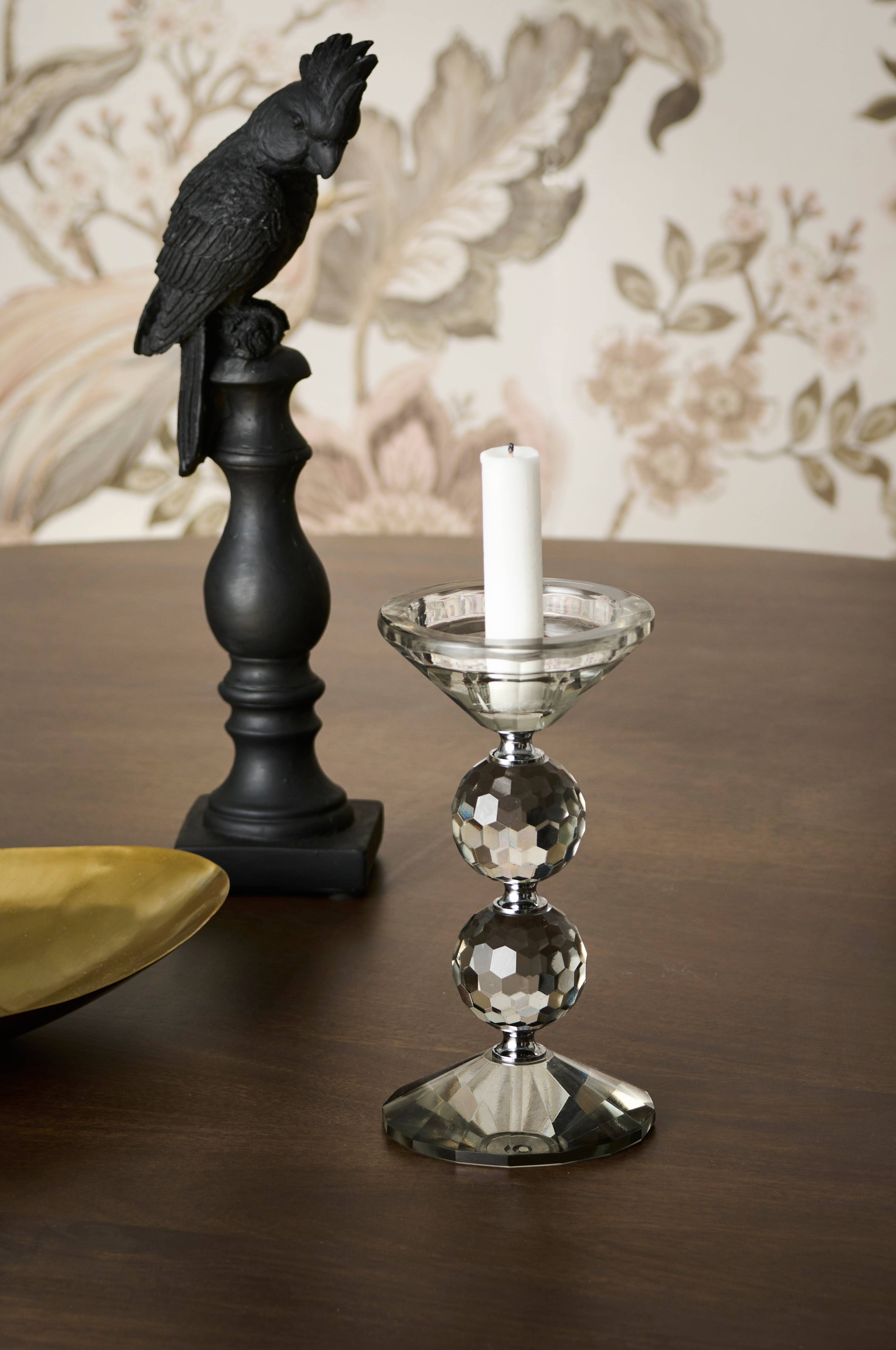 Lysestage i glas med detaljer i metal.Materiale: 95% glas, 5% metal.