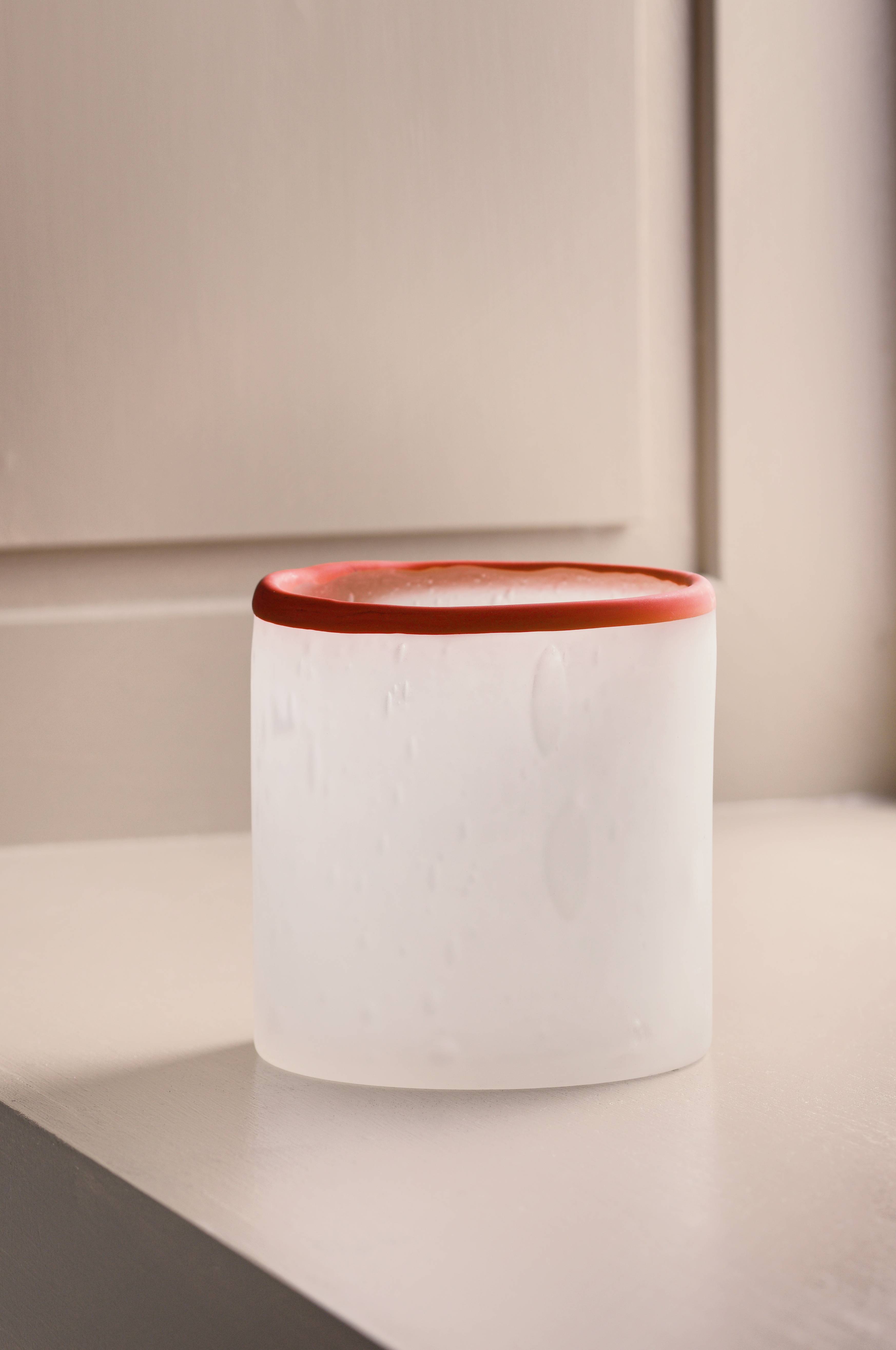 Håndlavet lysestage i glas med matteret finish.Hver lysestage er håndlavet og unik. Derfor er det normalt, at der kan forekomme små variationer i farve, nuance og finish fra lysestage til lysestage.
