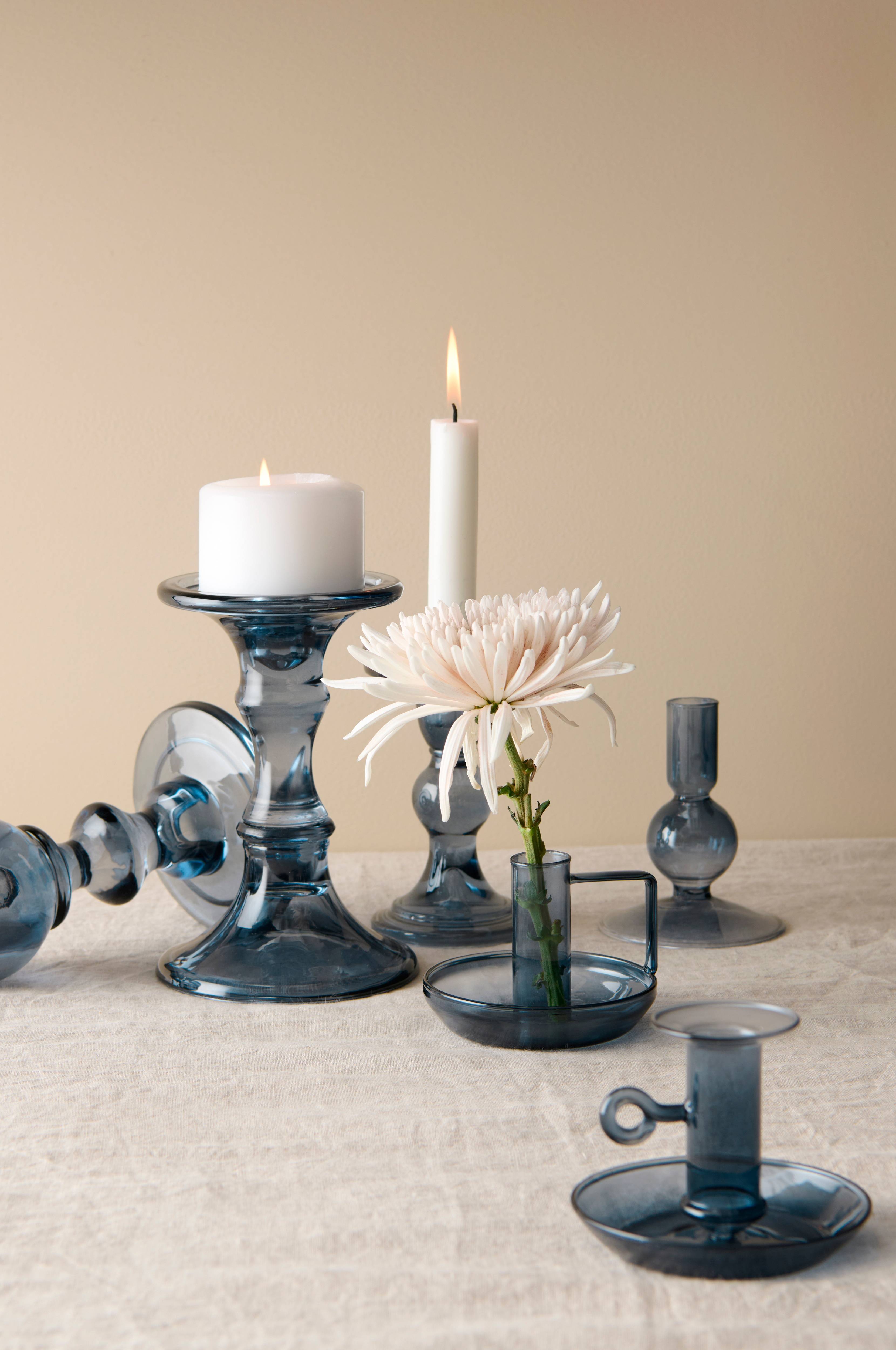 Bestilte den gennemsigtige 18 cm høj. Ser ud som på billedet. Står stabilt på mit hjørnebord. Meget flot med bloklys. Hvis lyset begynder at løbe, har lysestagen en kant, som i starten…