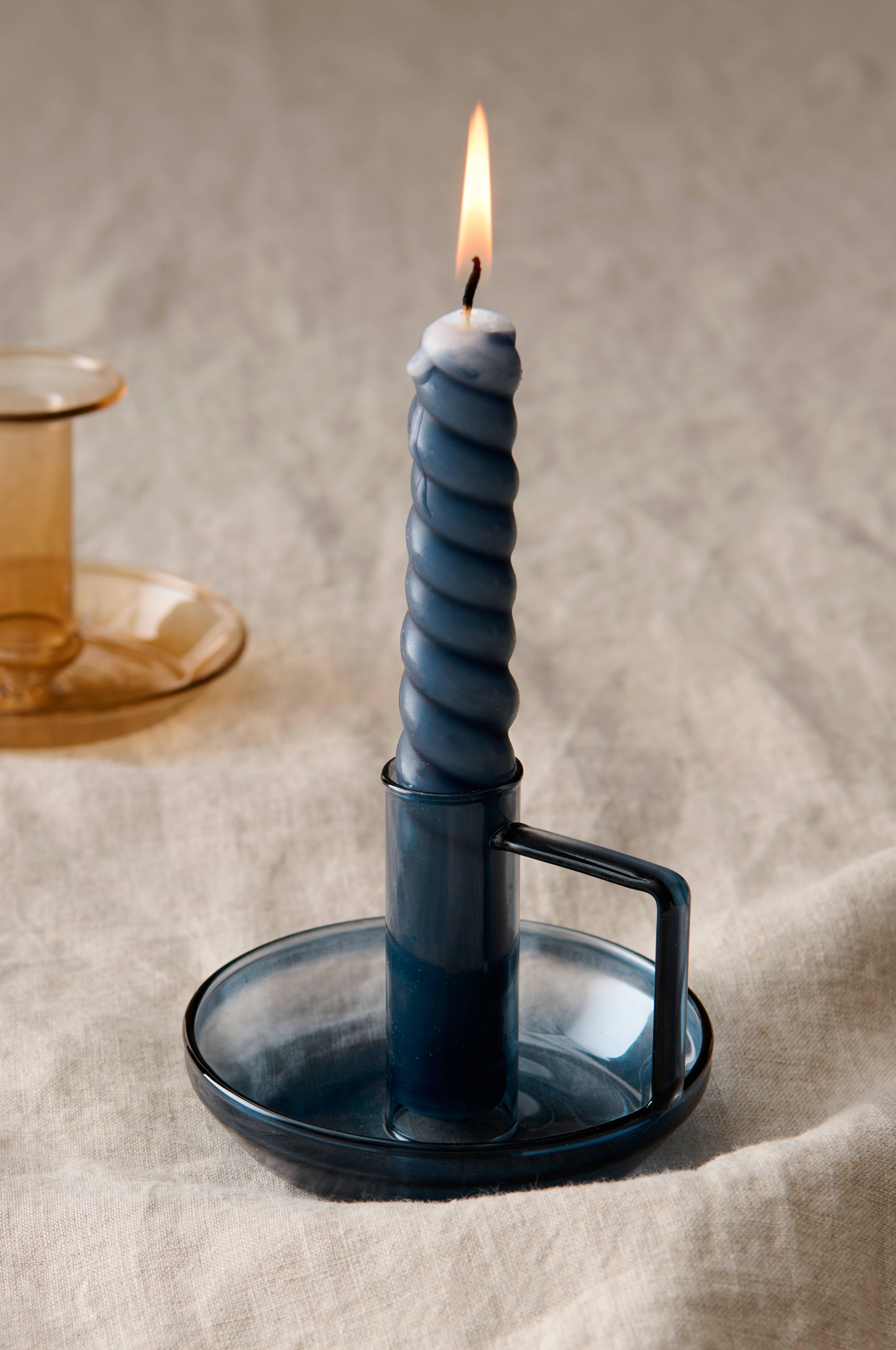 Meget fin lysestage! Flot farve og flot design. Tyndt glas, så man skal være lidt forsigtig, og man skal være forberedt på at tage lyset ud et godt stykke, før det brænder ned. Men utrolig smu…
