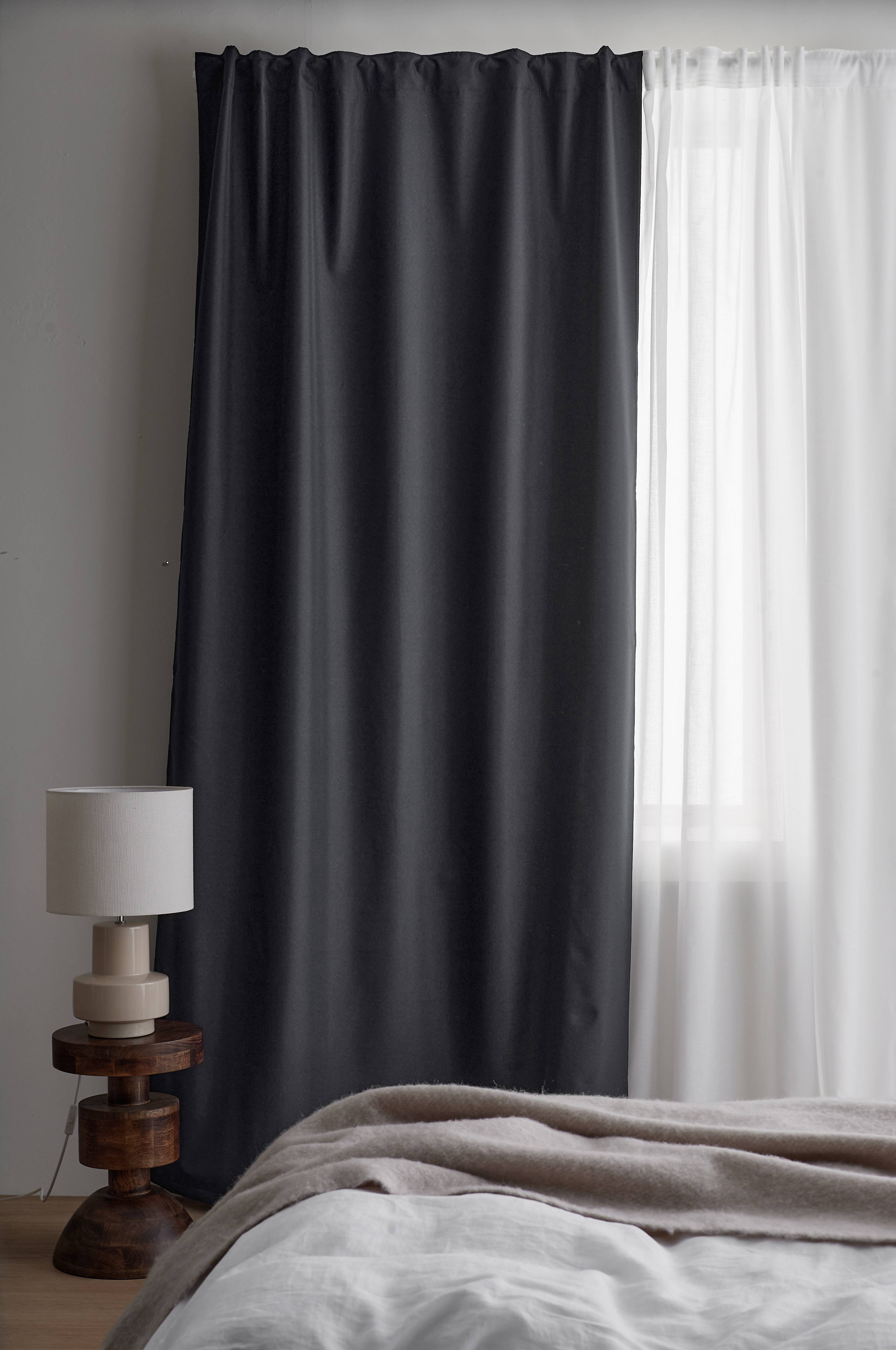 Multibåndslængde i dobbelte lag med høj mørklæggende effekt. Et lag er polyester med vævede tråde og et lag er polyester fleece. Kraftige stoffer i et rum giver også en lyddæmpende effekt.